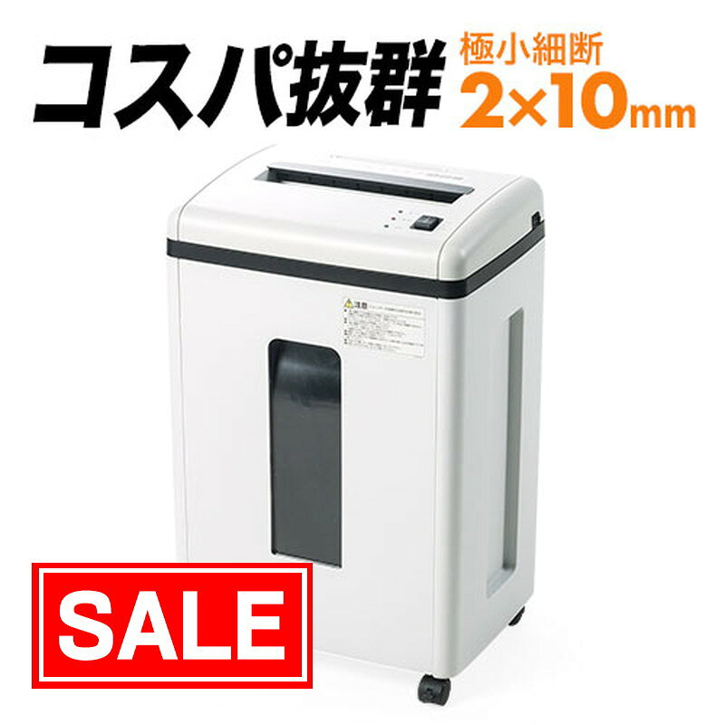 コンパクトサイズのマイクロカット電動シュレッダー。ホッチキス針をしたままの細断に対応し、A4用紙3枚同時細断可能で連続使用時間2分。オフィスや家庭などで使用でき、コンパクトサイズの為、デスクサイドやデスク下への設置もおすすめのコンパクトシュレッダー。<特長>●コンパクトサイズのマイクロカット電動シュレッダーです。●ホッチキスの10号針、11号針をしたまま最大3枚まで同時に細断できます。●細断形状は2×10mmのマイクロカットです。●プラスチック製、紙製のカードの細断にも対応しています。●ダストボックスは約10リットルです。●本体はたったの約4.2kgなのでゴミ捨て時も運びやすい軽量設計です。●用紙投入口に指が入らない安心安全なシュレッダーです。●細断部分がダストボックスにセットされていないと電源が入りません。●スイッチを逆回転にスライドさせると、紙詰まりが起こった際も、紙を簡単に取り出せます。●投入口に紙が投入されると自動的に細断し、終了すると自動的に停止します。●モーター保護のため、連続運転(2分以上)を続けたり書類をかみこんだ状態で放置すると、自動的に停止します。※約30分後には再び細断が可能になります。【ご注意】※はがきなど厚みのあるもの、切手やシールなど粘着性のあるものは、目詰まりの原因となるため、絶対に細断しないでください。※シュレッダーの刃の部分に用紙などの細断くずが付着している場合がありますが、全品検品を行なっているため、 製品検品の際の細断くずが付着したものになります。使用上問題ございませんので、予めご了承ください。<仕様>■サイズ:約W290×D140×H350mm■重量:約4.2kg■投入幅:220mm■定格細断枚数:紙/3枚※A4コピー用紙64g/平方メートルが目安です。カード/1枚■細断形状:2×10mmマイクロカット■細断速度:2m/分■騒音:約72dB■電源:AC100V(50/60Hz)■消費電力:230W■連続使用時間:約2分間(30分休止後再運転可)■ダストボックス容量:約10リットル■細断収容枚数:A4コピー用紙/約130枚■生産国:中国■保証期間:ご購入日より6ヶ月■取扱説明書:日本語取扱説明書あり<関連キーワード>400-PSD039 サンワサプライ 電動シュレッダー 家庭用 オフィス用 マイクロカット カード ホッチキス オフィス 会社 事務 事務所 家庭 書斎 デスクサイドシュレッダー メディア 細断機 はさみ マイナンバー セキュリティ対策 サンワサプライ 4969887897362 7,580円 税込 送料別 カードOK レビュー3件 激安アウトレット店 ![]() | ||