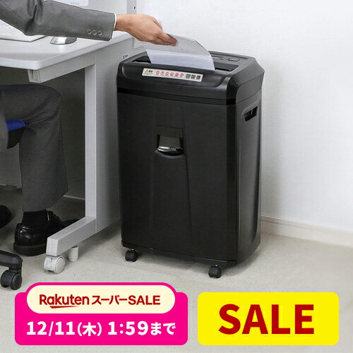 ■商品サイズ(cm)幅約38×奥行約29×高さ約60.4■商品重量(電源コード含む)約17.7kg■電源電圧AC100V■電源周波数50/60Hz■定格消費電力50Hz:400W60Hz:490W■待機電力1.5W■投入幅(mm)紙投入口:約218■細断サイズ(mm)紙:約4×41CD:幅約30■細断速度50Hz:約4.0m/分60Hz:約4.6m/分■連続使用時間15分■最大細断枚数A4コピー用紙(64g/平方メートル):18枚以内※60Hzの場合、1〜2枚少なくなります。■定格細断枚数A4コピー用紙(64g/平方メートル):15枚以内CD、DVD、プラスチックカード(厚さ1.5mm):1枚※紙の細断能力は、紙質、湿度などにより変わります。■定格時間15分(プラスチックカードは連続100枚以内)■電源コード約1.6m■ダストボックス容量約30LA4コピー用紙:約540枚CD・DVD:約30枚■ごみ袋推奨サイズ45L(65×80cm)※必ずごみ袋を取り付けて使用してください。■材質ABS樹脂、スチール■安全装置ダストボックススイッチ、過熱保護のサーマルプロテクター、過電流保護のオートストップ回路、給紙ガイドスイッチ、緊急停止スイッチ一度にA4コピー用紙を最大18枚細断できるオフィスシュレッダーです♪CD、DVD、プラスチックカードも細断できます。移動に便利なキャスター付きで、より使いやすくなりました。3つの機能で紙詰まりの原因から対策☆◆オートリバース機能紙を斜めに投入したり、細断能力以上の紙を投入すると自動で逆転し、運転を停止して紙詰まりを防ぎます。◆オートクリーニング機能5回に1回自動運転をしてカッターの汚れを落とすので、刃部分に細断クズが溜まりにくく、紙詰まりを防ぎます。◆強制細断機能紙が詰まってしまった場合、逆転ボタンと正転ボタンを同時に押すと逆転正転を自動で繰り返し、強制細断できます。※本機は紙、CD、DVD、プラスチック製カード用シュレッダーです。他の目的には使用しないでください。[検索用:シュレッダー さいだん しゅれっだー シュレッター ペーパーシュレッダー シュレッダ ペーパーシュレッダ DVD CD カード オフィス 書類 裁断 断裁 細断 オフィス用品 4967576365208] 最強翌日配送対象商品に関するご案内 最強翌日配送対象商品・対象地域に該当する場合は最強翌日配送マークがご注文カゴ近くに表示されます。 最強翌日配送可能なお支払方法は【クレジットカード、代金引換、全額ポイント支払い】のみとなります。 下記の場合は最強翌日配送対象外となります。 15点以上ご購入いただいた場合、 時間指定がある場合、 ご注文時備考欄にご記入がある場合、 決済処理にお時間を頂戴する場合、 郵便番号や住所に誤りがある場合、 最強翌日配送対象外の商品とご一緒にご注文いただいた場合、 お届け先住所文字数が40文字以上の場合 関連キーワード(本商品の説明ではありません)母の日 父の日 敬老の日 こどもの日 クリスマス バレンタイン ホワイトデー ハロウィン お正月 成人の日 成人式 記念日 誕生日 卒業式 入学式 お歳暮 お中元 春 夏 秋 冬 梅雨 節分 ひな祭り 七夕 十五夜 初詣 年越し 夏祭り 花火大会 結婚祝い 内祝い 出産祝い 快気祝い 還暦祝い 古希 喜寿 傘寿 米寿 卒寿 白寿 百寿 新築祝い 引っ越し祝い 開店祝い 開業祝い 就職祝い 昇進祝い 合格祝い 銀婚式 金婚式 七五三 長寿祝い 御礼 お母さん お父さん 義母 義父 祖父 祖母 おばあちゃん おじいちゃん 娘 息子 彼氏 彼女 恋人 友達 上司 先輩 後輩 同僚 キッズ 子供 幼児 ベビー 赤ちゃん 育児 学生 社会人 シニア 10代 20代 30代 40代 50代 60代 70代 80代 90代 一人暮らし 単身赴任 主婦 主夫 新生活 家族暮らし 子育て 旅行 トラベル ライブ ホームパーティ ビジネス 法人 ギフト プレゼントご注文前のよくある質問についてご確認下さい[ FAQ ] ≪ご注文前のよくある質問についてご確認下さい≫ \6月楽天スーパーSALE★期間限定★注目アイテム!/ \NEW★除電機能付き/ お届け先が沖縄・離島の場合、お届け日時のご希望に沿えない場合がございます。予めご了承ください。 29,480円 税込 送料込 カードOK レビュー3件 ウエノ電器 楽天市場店 ![]() | ||
