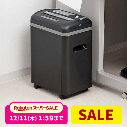 クリアボックス仕様で見えやすくて便利♪ オフィスでも気にせず細断できる静音タイプのシュレッダーです。 ゴミ箱は細断くずが見えやすいクリアボックス仕様です。 斜め挿入口仕様で紙の挿入がスムーズにできます。 ●カラー:ホワイト・ブラック ●商品サイズ(cm):幅約16.8x奥行約35.5x高さ約34.9 ●重量:約4.7kg ●電源:AC100V(50/60Hz) ●定格消費電力:90W ●投入幅:紙投入部220mm、CD・DVD投入部123mm ●投入厚:紙投入部3.0mm、CD・DVD投入部2.0mm ●投入厚部から刃先までの距離:20mm、CD投入部67mm ●定格細断枚数:A4コピー用紙5枚、CD・DVD1枚、プラスチック製カード1枚 ●安全装置:サーマルプロテクター、ダストボックススイッチ、温度ヒューズ ●細断サイズ:約4×27mm ●細断速度:約1.8m/分 ●主要材質:ABS樹脂、ポリプロピレン、スチール ●定格時間:5分(連続で使える時間) ●コードの長さ:約1.4m ●ダストボックス容量:8.8L ●CDケース容量:0.9L ●紙認識センサー:スイッチ式 最強翌日配送対象商品に関するご案内 最強翌日配送対象商品・対象地域に該当する場合は最強翌日配送マークがご注文カゴ近くに表示されます。 最強翌日配送可能なお支払方法は【クレジットカード、代金引換、全額ポイント支払い】のみとなります。 下記の場合は最強翌日配送対象外となります。 ・15点以上ご購入いただいた場合 ・時間指定がある場合 ・ご注文時備考欄にご記入がある場合 ・決済処理にお時間を頂戴する場合 ・郵便番号や住所に誤りがある場合 ・最強翌日配送対象外の商品とご一緒にご注文いただいた場合 ・お届け先住所文字数が40文字以上の場合お届け先が沖縄・離島の場合、お届け日時のご希望に沿えない場合がございます。予めご了承ください。 ★ご注文前のよくある質問についてご確認下さい★ こちらもよく比較されています 8,790円 税込 送料込 カードOK レビュー88件 g+プラス ![]() | ||