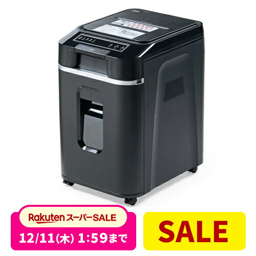 商品詳細連続使用時間240分で、用紙を一度に470枚セットすることで、自動給紙、細断ができるオートフィード方式。4桁の暗証番号でフタのロックが可能で、細断中の書類の機密を守る。手差し細断も最大12枚まで対応可能で、CD、カード類、ホッチキス、クリップも細断できるミニクロスカット細断オートフィードシュレッダー。仕様■サイズ:約W400×D500×H760mm■重量:約23.4kg■細断形状:4×12mmミニクロスカット■最大自動給紙枚数(オートフィード時): 470枚■最大細断枚数 (手差し細断時):12枚 ※A4コピー用紙64g/平方メートルが目安です。カードまたはCD/1枚■投入幅:240mm■ダストボックス容量:53リットル■細断速度:約1.8m/分(50/60Hz)■ダストボックス収容枚数 :300枚■電源:AC100V(50/60Hz)■消費電力 :300W■連続使用時間:240分■生産地:中国■保証期間:ご購入日より1年■取扱説明書:日本語取扱説明書あり表示された検索窓に商品番号を入力してください【 商品番号:400-PSD068 】【2023年10月登録】関連キーワード:静音 業務用 デスクサイドシュレッダー シュレッター 電動 シュレタ シュレダ しゅれったー しゅれっだー マイナンバー 個人情報漏えい防止 細断 裁断 情報保護に サンワサプライ 4969887452790表示された検索窓に商品番号を入力してください【 商品番号:400-PSD068 】⇒こちらの商品のレビューを、もっと読みたい方はこちら 97,200円 税込 送料込 カードOK レビュー1件 サンワダイレクト楽天市場店 ![]() | ||