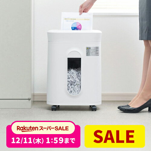 ※注文確定時に時間指定のプルダウンが出てくる場合がございますが、設置込み商品ご注文の場合は時間指定できかねますので、予めご了承ください。クリアボックス仕様で見えやすくて便利♪ 細断サイズが2×12mmの細密シュレッダーです。 オフィスでも気にせず細断できる静音タイプのシュレッダーです。 ゴミ箱は細断くずが見えやすいクリアボックス仕様です。 斜め挿入口仕様で紙の挿入がスムーズにできます。 ●カラー:ホワイト・ブラック ●商品サイズ(cm):幅約17.8x奥行約38.3x高さ約40 ●重量:約6.8kg ●電源:AC100V(50/60Hz) ●定格消費電力:165/130W(50/60Hz) ●投入幅:紙投入部220mm、CD・DVD投入部123mm ●投入厚:紙投入部3.0mm、CD・DVD投入部2.0mm ●投入厚部から刃先までの距離:20mm、CD投入部45mm ●定格細断枚数:A4コピー用紙6枚(50Hz)/5枚(60Hz)、CD・DVD1枚、プラスチック製カード1枚 ●安全装置:サーマルプロテクター、ダストボックススイッチ、温度ヒューズ ●細断サイズ:約2×12mm ●細断速度:約1.7m/分 ●主要材質:ABS樹脂、ポリプロピレン、スチール ●定格時間:5分(連続で使える時間) ●コードの長さ:約1.4m ●ダストボックス容量:10.8L ●CDケース容量:0.9L ●紙認識センサー:光センサー式 最強翌日配送対象商品に関するご案内 最強翌日配送対象商品・対象地域に該当する場合は最強翌日配送マークがご注文カゴ近くに表示されます。 最強翌日配送可能なお支払方法は【クレジットカード、代金引換、全額ポイント支払い】のみとなります。 下記の場合は最強翌日配送対象外となります。 ・15点以上ご購入いただいた場合 ・時間指定がある場合 ・ご注文時備考欄にご記入がある場合 ・決済処理にお時間を頂戴する場合 ・郵便番号や住所に誤りがある場合 ・最強翌日配送対象外の商品とご一緒にご注文いただいた場合 ・お届け先住所文字数が40文字以上の場合 関連キーワード(本商品の説明ではありません)母の日 父の日 敬老の日 こどもの日 クリスマス バレンタイン ホワイトデー ハロウィン お正月 成人の日 成人式 記念日 誕生日 卒業式 入学式 お歳暮 お中元 春 夏 秋 冬 梅雨 節分 ひな祭り 七夕 十五夜 初詣 年越し 夏祭り 花火大会 結婚祝い 内祝い 出産祝い 快気祝い 還暦祝い 古希 喜寿 傘寿 米寿 卒寿 白寿 百寿 新築祝い 引っ越し祝い 開店祝い 開業祝い 就職祝い 昇進祝い 合格祝い 銀婚式 金婚式 七五三 長寿祝い 御礼 お母さん お父さん 義母 義父 祖父 祖母 おばあちゃん おじいちゃん 娘 息子 彼氏 彼女 恋人 友達 上司 先輩 後輩 同僚 キッズ 子供 幼児 ベビー 赤ちゃん 育児 学生 社会人 シニア 10代 20代 30代 40代 50代 60代 70代 80代 90代 一人暮らし 単身赴任 主婦 主夫 新生活 家族暮らし 子育て 旅行 トラベル ライブ ホームパーティ ビジネス 法人 ギフト プレゼント★☆きっと欲しいものが見つかる☆★ 11,140円 税込 送料込 カードOK レビュー18件 便利生活 マイルーム ![]() | ||