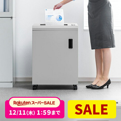 商品詳細最大60枚のA4用紙を投入口にセットするだけで1枚ずつ自動細断できるオートフィードシュレッダー。約20分連続細断が可能で、多くの書類をセットするだけで細断されるので、作業効率につながる業務用シュレッダー。最大8枚の手差し細断も約10分間連続細断できる。2×10mmマイクロカット採用で、カード細断、ホッチキス細断にも対応。キャスター付き。仕様■サイズ:約W32.5×D21.5×H45cm■重量:約6kg■投入幅:約220mm■定格細断枚数:オートフィード時/60枚、... 18,720円 税込 送料込 カードOK レビュー12件 サンワダイレクト楽天市場店 ![]() | ||