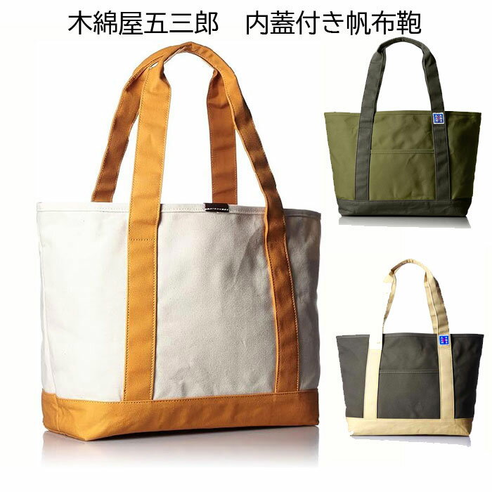 木和田 木綿屋五三郎 トートバッグ 内蓋付き帆布鞄(小サイズ・3色展開)兵庫県豊岡製 4974商品説明特徴と魅力本体は滋賀県高島市で作られた「富士金梅R」と言う帆布を使用しています。この帆布は「パラフィン樹脂防水加工」が施されているので撥水性があり、通常の帆布より硬めに仕上がっています。(完全防水を保証するものではございません)使っていくうちに風合いが増す素材です。この帆布を鞄の聖地、兵庫県豊岡市の熟練の職人達が丁寧に縫い上げています。開口部はファスナーやマグネットボタンなどをあえて使わず、ふたを付けています。トートバッグはポイポイと物を入れる事が出来るのが良いところですが、その利便性を損なわず使っていただけるアイデアです。荷物の上にかければ目隠しになりますし、下側に下ろしておけば内部にあるポケットを覆う事が出来、防犯対策になります。内部には合計6個のポケットが備えられているので、小物の収納にも便利です。ハンドル部分は肩にもかけられるように長めに作られています。手頃なサイズで、海や山へお出かけになる時にピッタリです。もちろん普段使いにも十分耐えられる仕様になっています。 素材 10号帆布パラフィン樹脂防水加工(富士金梅RL1050) サイズ (約)縦28×横33×マチ14.5cm持ち手高さ/(約)20cm重量/470gスペック開閉/カブセ蓋本体前面/オープンポケット×1本体内部/オープンポケット×6生産国 日本 ブランド 木綿屋五三郎(木和田)カラー JANコード生成 05 4562121413207抹茶 50 4562121413221ダークカーキ 53 4562121413245発送詳細○昼12時までのご注文、振込み確認で、即日発送致します。(日曜定休)※土曜午後から日曜にかけてのご注文分は月曜発送になります。○送料無料(本州、四国、九州)北海道、沖縄には発送できません。 8,800円 税込 送料込 カードOK レビュー1件 木馬家具 ![]() | ||