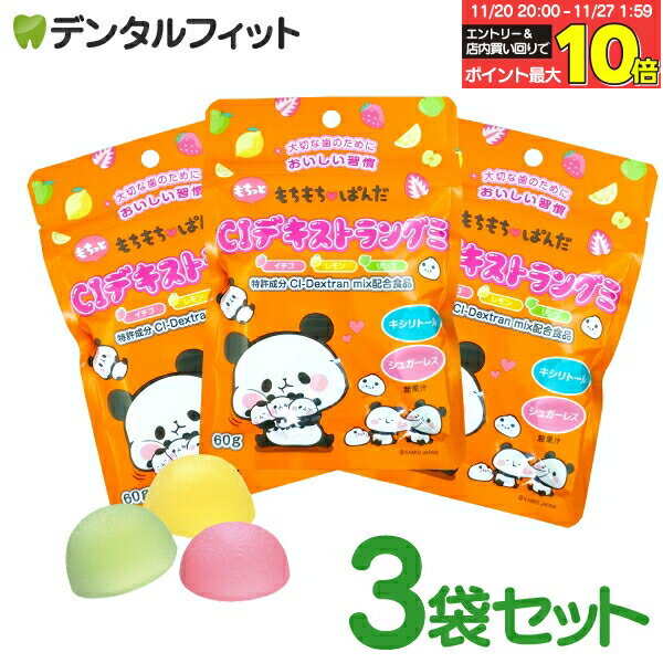 CI-Dextran mixを配合したグミキャンデー キシリトール配合でシュガーレス もちもちな弾力のジューシーなフルーツグミ お子様から大人まで、幅広くおいしい 3味アソート:イチゴ、レモン、リンゴ サイクロデキストラン(CI)とは? CIはグルコースが輪のようにつながった環状オリゴ糖で、大きな特徴は「プラーク形成抑制効果」をもつことです。 主な特徴:プラーク形成抑制効果 虫歯や歯周病の原因「プラーク」 プラークは虫歯菌や歯周病菌等の細菌の集合体です。虫歯菌はGTFの働きによってスクロースから不溶性グルカンを合成し、この不溶性グルカンの働きによってプラークが形成されます。 こうなると、プラーク内の虫歯菌が産生した酸はプラーク内に留まり、酸が歯の表面を溶かすことで虫歯になります。 *GTF:不溶性グルカン合成酵素 GTFを阻害してプラークの形成を抑制する CIはGTF阻害効果を有するので、スクロースから不溶性グルカンを作らせず、プラークの形成を抑制します。 プラーク形成抑制効果のイメージ スクロース存在下でも不溶性グルカン生成を抑制する CIは虫歯菌の酵素に働くので、スクロースが存在していてもプラークの形成を抑制します。CIはキシリトール等のような「虫歯菌が利用できない糖」ではなく、「虫歯菌に糖を利用させないオリゴ糖」です。 その他の機能として、包接作用を示す可能性も示されています。(マスキング効果、可溶化、安定化、バイオアベイラビリティーの向上) CI(サイクロンデキストラン)の製造と口腔ケアなどの研究で ウェルネオシュガーが技術開発賞を受賞! 第73回日本応用糖質科学会大会(2024年9月25日~27日) 『サイクロデキストランの製造方法開発と機能研究』技術開発賞受賞 名称 グミキャンデー ・原材料名 (イチゴ・レモン・リンゴ) 還元麦芽、糖水あめ(国内製造)、ゼラチン、環状イソマルトオリゴ糖(乳成分を含む)、粉末オブラート ・添加物 (イチゴ) 甘味料(キシリトール)、酸味料、香料、光沢剤、アカダイコン色素、乳化剤 (レモン) 甘味料 (キシリトール)、酸味料、香料、光沢剤、ベニバナ黄色素、乳化剤 (リンゴ) 甘味料 (キシリトール) 、香料、光沢剤、着色料(紅麹、クチナシ)、乳化剤 60g ※環状イソマルトオリゴ糖(CI-Dextran mix)特許成分CI-Dextran mixはウェルネオシュガーグループ 日新製糖株式会社が原料供給しています。 栄養成分表示 1袋(60g)あたり エネルギー 200kcal タンパク質 4.3g 脂質 0.1g 炭水化物 45.5g -糖類 0g 食塩相当量 0.026g ≪ご注意ください≫ ▼原材料に含まれるアレルギー物質「乳成分」 ▼本品(CIデキストラングミ)の生産ラインと同じ生産ラインで、「小麦・卵・オレンジ・キウイフルーツ・大豆・バナナ・もも・りんご」を含む製品を製造しております。 ●開封後は早めにお召し上がりください。●グミの表面に見られる白い粉はグミ同士の付着を防ぐためのものです。●切り口や袋のはしで手を切らないようご注意ください。●直射日光のあたる場所、高温多湿の場所に置くと、グミが溶けたり、変形することがあります。●のどに詰まらせないよう、少しずつよく噛んでお召し上がりください。●お子様の手の届かないところに保管し、噛む力の弱いお子様には保護者の指導管理のもと摂取させてください。●一度に多量に摂取すると、体質によりお腹がゆるくなる場合があります。 【ご注意(免責)事項】当店では、サイト上に最新の商品情報を掲載するよう努めておりますが、メーカーの都合等により、商品規格や仕様(容量・成分・パッケージ・原産国など)が予告なく変更される場合がございます。このため、実際にお届けする商品と商品ページ上の情報表記が異なる場合がございますので、ご使用前には必ずお届けした商品の商品ラベルや注意書きをご確認ください。また、商品情報についてページ表記以外の詳細が必要な場合は、メーカー等にお問合せください。▼お得な大袋・セット商品・関連商品はこちら▼ CIデキストラングミ 1袋(60g/約15粒) CIデキストラングミ 3袋セット(1袋/60g約15粒) CIデキストラングミ 個包装 お徳用(400g/約100粒入) 【キシリトール100% タブレット】 CIデキストランタブレット 1袋(90粒) CIデキストランタブレット 2袋セット(1袋/90粒) CIデキストラングミ 1袋(60g/約15粒)+CIデキストランタブレット 1袋(90粒) 1,223円 税込 送料別 カードOK レビュー6件 歯科医院専売品のデンタルフィット ![]() | ||