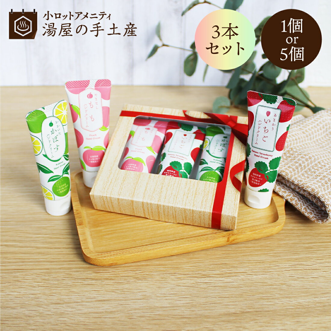 当店人気のご当地ハンドクリームのアソートセット 「あまおういちご」「大分かぼす」「山梨もも」の3種セット! 3種類のフルーティーな香りをお楽しみください♪ 可愛いギフト箱入なのでプレゼントとしてオススメです! ■■■■■ ご注意 ■■■■■ こちらの商品はゆうパケット(ポスト投函)で送料無料となります。 代金引換不可/同梱不可/日時指定不可/荷物補償不可 住所に不備があるとお届けできません。 マンション、アパート、集合住宅にお住まいの方は、マ... 1,740円 税込 送料込 カードOK レビュー113件 小ロットアメニティ 湯屋の手土産 ![]() | ||