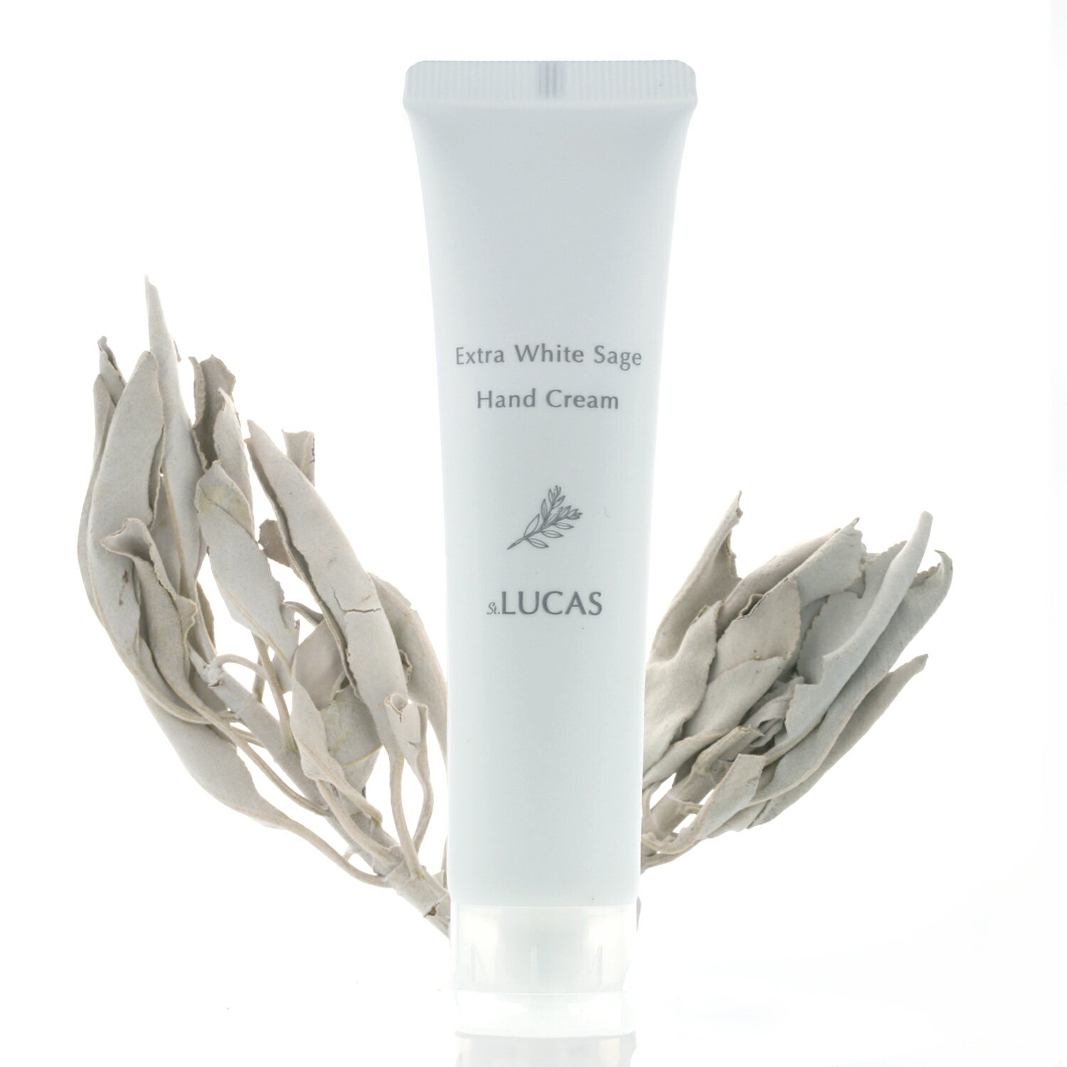 179. 「聖なるハーブ」のハンドクリーム 天然由来成分100%【送料無料】ルカス ハンドクリーム ホワイトセージ LUCAS 天然由来100% 精油配合 さらっと ベタつかない 乾燥対策 男女兼用 30g 容量 30g ご使用方法 指先に2〜3cm取り出し、手で少し温めてから手全体に広げます。 ご使用上の注意 お肌に異常が生じていないかよく注意して使用してください。お肌に合わないとき、即ち次のような場合にはご使用をおやめください。そのまま使用を続けますと、症状を悪化させることがありますので、皮膚科専門医等にご相談されることをおすすめします。(1) 使用中、赤み、はれ、かゆみ、刺激、色抜け(白斑等) や黒ずみ等の異常があらわれた場合 (2) 使用したお肌に直射日光があたって上記のような異常があらわれた場合 傷やはれもの、しっしん等、異常のある部位にはお使いにならないでください。目に入ったときはただちに洗い流してください。 保管上の注意 極端に高温または低温の場所、直射日光のあたる場所には保管しないでください。乳幼児の手の届かない場所で保管してください。 全成分 サルビアアピアナ葉水、トリ(カプリル酸/カプリン酸)グリセリル、ミツロウ、ベヘニルアルコール、ペンチレングリコール、オリーブ油脂肪酸セテアリル、オリーブ油脂肪酸ソルビタン、サルビアアピアナ葉エキス、カプリリルグリコール、キサンタンガム、グリコシルトレハロース、加水分解水添デンプン、トウキンセンカ花エキス、カミツレ花/茎エキス、コメ発酵液、サルビアアピアナ油 ※サルビアアピアナ=ホワイトセージとなります。 サルビアアピアナ油はエクストラ・ホワイトセージの精油を指します。エクストラ・ホワイトセージ ハンドクリーム ホワイトセージ精油を配合した、心安らぐ香りのハンドクリームです。 天然由来成分にこだわってリニューアルいたしました。 肌にのせた瞬間、やさしく広がるホワイトセージの清らかな香りが、 忙しい毎日にそっと深呼吸の時間をもたらします。 乾燥が気になる季節はもちろん、 手洗いやアルコール消毒後のケアに。 さらっとしていて、べたつきが少ないテクスチャーで男女問わずおすすめです。 心も潤うような優しいホワイトセージの香りが特徴で、使用するたびにフレッシュな爽やかさと潤いを体験してください。 こだわりの成分 毎日使うものだからこそ、 天然由来成分を中心に、やさしさと心地よさにこだわって配合しました。 🌿 ホワイトセージ精油(サルビアアピアナ油) 【香り・肌を整える】 ホワイトセージ由来の精油を配合。 清らかでやさしい香りが手元からふんわり広がり、 毎日のハンドケア時間を心地よいひとときに導きます。 肌をすこやかに保ちたい方に。 🌼 カミツレエキス(カモミール) 【肌をすこやかに保つ】 古くから親しまれてきた植物由来成分。 乾燥や外的環境の影響を受けやすい手肌を、 やさしく整え、健やかな状態へ導きます。 デリケートな肌をいたわりたい方にも。 🌸 トウキンセンカ花エキス(カレンデュラ) 【肌を整える・うるおいケア】 肌をすこやかに保つとされる植物エキス。 乾燥しがちな手肌にうるおいを与え、 なめらかな肌触りへ導きます。 季節の変わり目のケアにもおすすめです。 🍯 ミツロウ 【保湿・保護】 天然由来の保湿成分。 肌表面をやさしく包み込み、 うるおいを保ちながら、しっとりとした使い心地をサポートします。 🌾 米発酵液エキス 【うるおい・肌を整える】 米を発酵させて得られたエキスを配合。 手肌にうるおいを与え、 乾燥しやすい肌をなめらかに整えます。 自然由来の美容素材にこだわりたい方に。 使い方 クリームを適量手に取り、ゆっくりと肌に馴染ませてください。 親指と人差し指の間や、爪の付け根などをマッサージしてあげるようにクリームを浸透させるとさらに効果的です。 指先や爪は乾燥しがちで、荒れていると目立つので特に入念にケアしてあげましょう。 最後に深呼吸するように香りを楽しんで、心もリラックスさせてください。 ホワイトセージについて ホワイトセージとは、天然のハーブの一種で、古くから「けがれを祓う神聖な天然ハーブ」と呼ばれてきました。 花言葉は『家族愛』と『尊敬』。 自然に対する敬愛と家族を思う慈しみの心を表すもので、ホワイトセージらしさを表現した美しい花言葉です。 ネイティブアメリカンがホワイトセージを「聖なるハーブ」「神聖な賢人」と呼びさまざまな儀式に用いたり、ホワイトセージの持つ抗菌作用で体内のけがれを払い、体内バランスを整えてくれる神聖な存在として大切に扱ってきた歴史があります。 容量 30g ご使用方法 指先に2〜3cm取り出し、手で少し温めてから手全体に広げます。 ご使用上の注意 お肌に異常が生じていないかよく注意して使用してください。お肌に合わないとき、即ち次のような場合にはご使用をおやめください。そのまま使用を続けますと、症状を悪化させることがありますので、皮