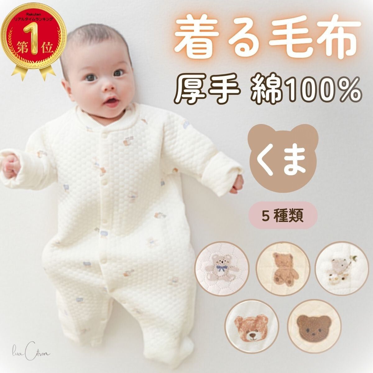 サイズ◇59cm 着丈:19.5cm 身幅:25cm 袖丈:23cm ◇66cm 着丈:54.5cm 身幅:26.5cm 袖丈:25cm ◇73cm 着丈:59.5cm 身幅:28cm 袖丈:27cm ◇80cm 着丈:64.5cm 身幅:29.5cm 袖丈:29cm ◇90cm 着丈:69.5cm 身幅:31cm 袖丈:31cm素材綿100%特徴秋冬に欠かせない厚手カバーオールを探しているパパママへ。 当店の長袖 新生児 ロンパースは、赤ちゃんの体温を逃がしにくいあったか設計で、 59・60・70・80・90の豊富なサイズに対応。男の子・女の子どちらにも似合うベビー服として人気です。 デザインは、ほっこり可愛いくま(クマ)柄。 星や月のモチーフを組み合わせた、赤ちゃんらしい世界観が魅力。 写真映えするかわいいくま柄ロンパースとして、普段使いだけでなくお祝いシーンでも選ばれています。 毎日の着替えがしやすい前開きタイプなので、新生児期のねんね赤ちゃんにも使いやすい仕様。 動きやすさと防寒性を両立した秋冬向け素材で、肌寒い季節も快適に過ごせます。 出産祝い・ベビーギフトとしても大好評。 「かわいい」「おしゃれ」「あったかい」とレビューをいただく、秋 冬の人気子供服・ベビーアイテムです。 こども・子ども向けのプレゼントを探している方にもおすすめ。 赤ちゃんの可愛さを引き立てる新生児 ベビー カバーオールで、秋冬のおでかけやおうち時間をもっと快適に。 プレゼントにも喜ばれる、おしゃれで実用的なベビー ロンパースです。注意事項■素材の特性上、お洗濯やクリーニングにより多少の縮みやねじれが生じる場合もございます。 ■商品の撮影には最大限注意を払っておりますが、閲覧時のモニター環境によりましては実際の商品と若干違うお色味に映ることもございます。関連商品はこちらアニマル 動物 長袖 あったか 厚手 前開...2type スター 星 ロンパース あったか ... 2,980円 税込 送料込 カードOK レビュー14件 lua Citron ![]() | ||