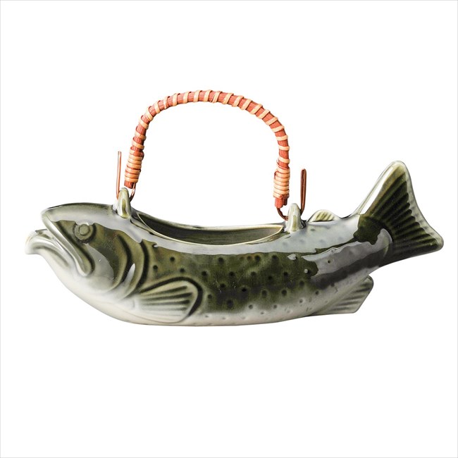 本体サイズ約32×9×12cm 本体重量約600g 素材・材質陶磁器 原産国日本 商品説明ご家庭で本格的な骨酒が楽しめる、骨酒用酒器です。岩魚などの渓魚をじっくりカリカリになるまで炙り、酒器に入れて熱めにお燗した日本酒をそそぎ、しばらく待つと、美味しい骨酒が楽しめます。寿司屋、居酒屋、和食店や料亭、旅館など業務用にもぴったりです。土と炎が生み出す温かみのある素材感が食卓を豊かに彩ります。個性的なデザインはインテリアとして、また花器としてもおススメです。日本製の確かな品質も魅力です。※焼き物の特性上、風合いや色合い、サイズがそれぞれ異なる場合がありますがご了承ください。容量:650cc 商品区分 当店では、ギフトラッピング(熨斗対応を含む)はお受けすることができませんので、あらかじめご了承ください 2,610円 税込 送料別 カードOK Goodsania 2nd store ![]() | ||