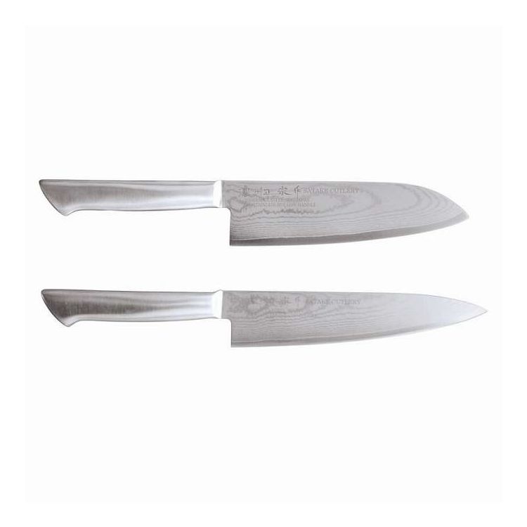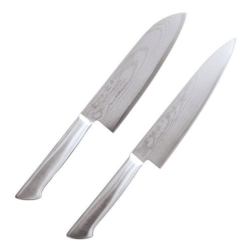 ダマスカス包丁2点セット※こちらは【取り寄せ商品】です。必ず商品名等に「取り寄せ商品」と表記の商品についてをご確認ください。シルバーカラーでスタイリッシュなデザイン。幾重にも折り重なる刃紋と鋭い切れ味。波模様に広がる波紋が美しい一品です。ステンレス製のハンドルで衛生面において大変優れています。 47,547円 税込 送料別 カードOK ナノズ 楽天市場店 ![]() | ||