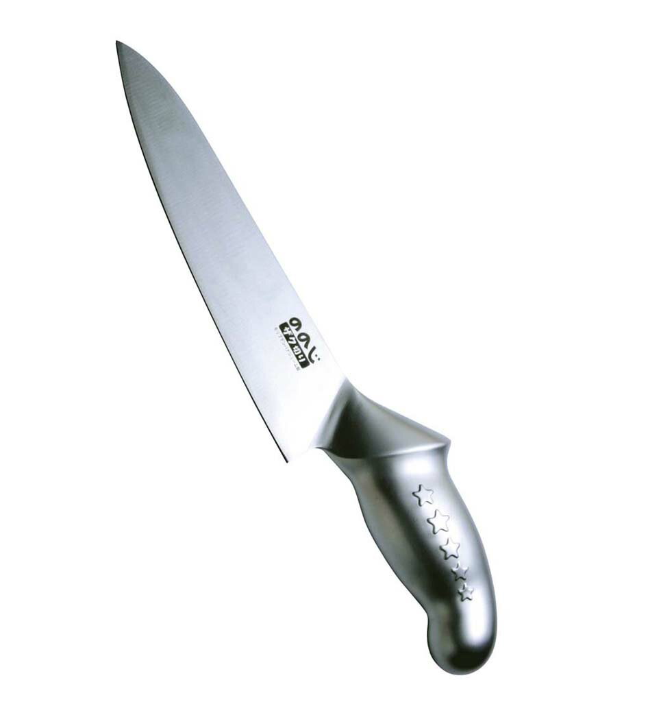 ●大量調理専用ザクザク切れる庖丁です●マメ・タコ防止のエッグシェルグリップ。指の根本でしっかり押さえられるから誰でも簡単に力がいれやすく、滑り込みがありません。●テコが利きやすい柄の軸芯を上げた設計。テコの応用でコントロールしやすいので、硬いものでもザクザクと気持ちよく切ることが出来ます。【外寸 (mm)】 330【重量】 190g【材質】 モリブデンバナジウム+軟質ステンレス 背:1.5※ ご注文をいただきましたのち、メーカーの在庫を確保・取り寄せする商品となります。近年の社会情勢により、メーカー側のやむを得ない事情で生産待ち・生産終了となっているケースがございます。ご不便おかけしますことお詫びします。ご注文前に在庫・納期状況または関連商品についてお問い合わせのほどご検討をよろしくお願いします。 17,600円 税込 送料別 カードOK 厨房の達人 ![]() | ||
