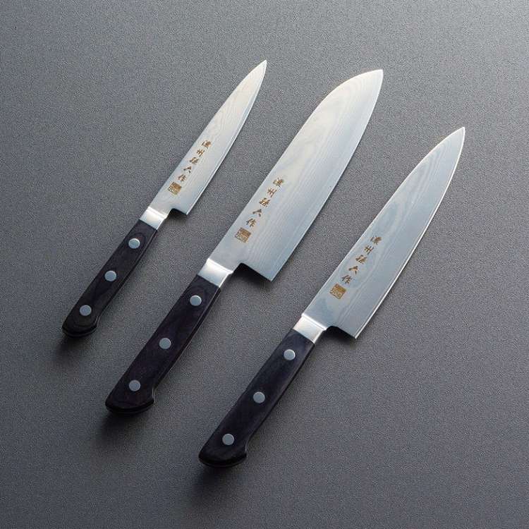 【商品詳細】濃州孫六作の伝統を受け継いで、日本刀の鍛錬技術のもと、1丁ずつ造られました。材質:積層鍛接複合鋼材、柄:黒色積層強化木生産国:日本セット内容:三徳包丁(刃渡18cm)・牛刀包丁(刃渡18cm)・ペティナイフ(刃渡13.5cm)×各1【代引きについて】こちらの商品は、代引きでの出荷は受け付けておりません。【送料について】北海道、沖縄、離島は送料を頂きます。 67,100円 税込 送料別 カードOK リコメン堂 ![]() | ||