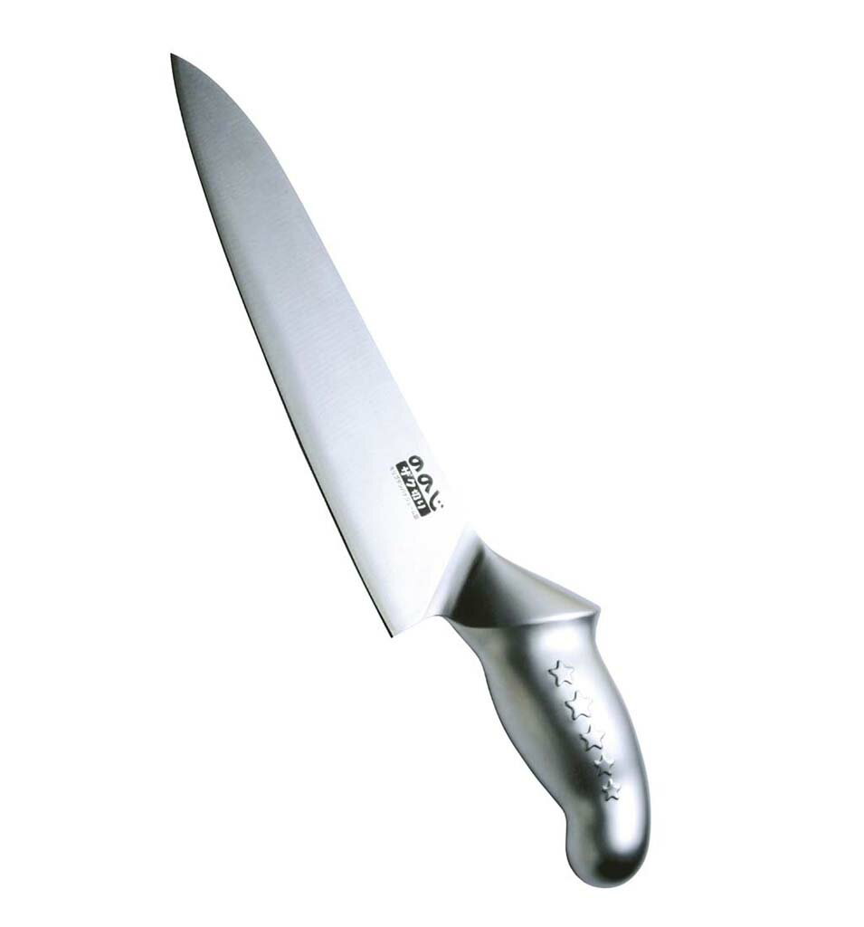 ●大量調理専用ザクザク切れる庖丁です●マメ・タコ防止のエッグシェルグリップ。指の根本でしっかり押さえられるから誰でも簡単に力がいれやすく、滑り込みがありません。●テコが利きやすい柄の軸芯を上げた設計。テコの応用でコントロールしやすいので、硬いものでもザクザクと気持ちよく切ることが出来ます。【外寸 (mm)】 360【重量】 220g【材質】 モリブデンバナジウム+軟質ステンレス 背:1.7※ ご注文をいただきましたのち、メーカーの在庫を確保・取り寄せする商品となります。... 19,800円 税込 送料別 カードOK 厨房の達人 ![]() | ||