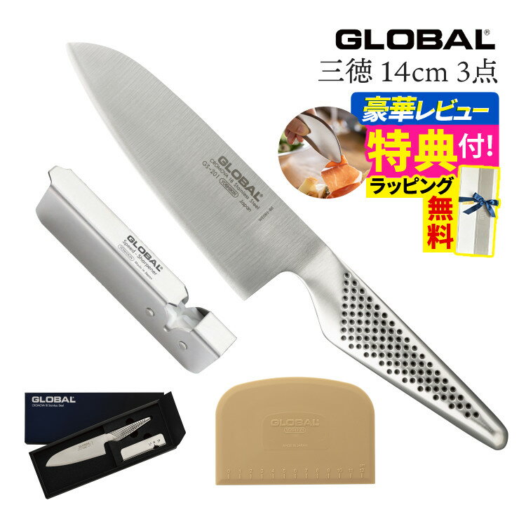 食洗機について こちらの包丁は 食洗機 非対応 です GLOBAL 三徳包丁 14cm 2点セット スクレーパー付き GST-AS201/SP 小型の万能包丁GS-201(三徳)と簡易シャープナーのセットに GLOBAL直営限定品のオリジナルスクレーパーが付いた特別セットです。 スタイリッシュでコンパクトな化粧箱に納まり、ギフトとしてもおすすめです。 GLOBAL(グローバル) 三徳 14cm GS-201 手の小さい方や軽い包丁をお探しの方におすすめの、家族三世代、みんなで使える小型の万能包丁です。 三徳とは、日本の万能包丁であり、どんな食材にも使いやすく汎用性が高い包丁です。 G-46(三徳18cm)やG-57(三徳16cm)と比べて、刃渡りも重量もコンパクトで、小回りが利きます。 にんじんやタマネギ、リンゴくらいの大きさの野菜や果物の切り分けに適したサイズ感です。 食材を手に持って皮をむいたり、直角に近い形状の包丁のアゴを利用して、じゃがいもの芽を取る作業でも活躍します。 刃付け 両刃(右利き・左利き兼用) 材質 刀身 / 刃物用ステンレス(モリブデン・バナジウム入) 柄 / 18-8ステンレス 寸法 全長26cm / 刃渡り14cm / 刀幅4.3cm 重量 125g 使用上の注意 ・刃欠けや折れの原因となるので、【冷凍食品、かぼちゃ、とうもろこし、乾燥した餅、骨や殻】など硬い食材への使用は避けてください。切る場合は、加熱するなど食材を柔らかくしてからご使用ください。 ・刃へのダメージ軽減と切れ味の持続のため、木製や柔らかいプラスチック製のまな板をご使用ください。 ・お客様の閲覧環境によって製品画像の色や質感が実物と異なる場合があります。 ※以下許容範囲といたします:縦、横、高は誤差±0.5cm / 重量は±5g GLOBAL(グローバル) スピードシャープナー GSS-01 両刃のステンレス包丁用のシャープナーです。 研ぎユニット部がセラミック製になっており、研ぎ性能が向上、錆の心配もありません。 包丁の切れ味が鈍り始めたら、軽く手前に6〜10回引いて頂く事で、切れ味を一時的に蘇らせることが出来ます。 包丁に最も適したお手入れ方法は砥石となりますが、砥石で研ぐのは面倒という方は、簡易的な日常使い用としてお勧めです。 用途ステンレス包丁用簡易シャープナー 材質本体 /ステンレス 研ぎ部/アルミナセラミックス 寸法縦1.5cm×横10.5cm×高2.5cm 重量65g 使用上の注意 ・刃付けの角度、精度が異なりますので、GLOBAL-PROシリーズには、使用しないでください。刃欠け・刃こぼれの原因となる場合がございます。 ・両刃用となりますので、出刃、パン切り、チーズナイフ等、片刃や波刃の包丁にはご使用頂けません。 ※以下許容範囲といたします:縦、横、高は誤差±0.5cm / 重量は±5g GLOBAL(グローバル) スクレーパー GKW-01 料理は食材を切るところから始まります。スクレーパーは快適な包丁仕事を助ける便利道具です。 【GLOBALスクレーパー 使用例】 1.適度なしなりを利用し、まな板の上の食材をヘラのようにかき集める 2.食材を乗せ、鍋や皿に移す 3.まな板の水切り ※ 4.目盛を利用してカットする目安を測る ※木製のまな板は使用前に一度濡らし、表面に水の膜を作ることで食材の色やにおい移りが少なくなります カラー ベージュ 用途スクレーパー 材質 ポリエチレン(耐熱温度90℃、耐冷温度-20℃) 寸法 縦9.7cm x 横14.5cm x 高さ0.3cm 重量 28g 使用上の注意 ・寸法、重量に関しては多少の個体差がございます。 ・製品の仕様の一部を予告なしに変更する場合がございます。 ・火のそばに置くと軟化し、変色することがあります。 ・食器洗浄機、食器乾燥機には入れないでください。 ※以下許容範囲といたします:縦、横、高は誤差±0.5cm / 重量は±5g 【包丁のお手入れについて】 ステンレス製の包丁でも、長時間濡れたまま・汚れがついたままのような状態だとサビは発生してしまいます。使用後・洗浄後はお早めに拭き取ることをお勧めいたします。 ※本商品に保証書はついていません。気になる点がございましたら、当店までご連絡ください。 世界中で愛される日本製オールステンレス包丁 GLOBAL 1983年の販売開始から、国内・海外で広く愛され続けるオールステンレス包丁。 キッチンを美しく。「切る」を快適に。料理が楽しくなることを目指し誕生しました。 1954年新潟県燕市にて、ステンレス製品メーカーとして出発した吉田金属工業。 挑戦することを恐れずに、鋼や木柄が普通だった包丁の常識をくつがえしたのが、[GLOBAL]ブランドです。 デザインも、切れ味も、持ちやすさも、全て満足させられる最高の一本を提供する。それがこれからも変わらぬ私たちの使命です。 GLOBALが愛される理由 (1)なめらかな切れ味の“ハマグリ刃” GLOBALの刃付けは、カーブを描くハマグリ刃。食材の刃離れが良いから切りやすさを実感できます。刃こぼれしにくく、刃先の強度を保てる構造でありながら、心地よくなめらかな切れ味です。 (2)伝統のブラックドット ハンドルにはプロダクトデザイナー山田耕民氏を招聘して生まれた、GLOBALの代名詞ともいえる美しいドットパタ