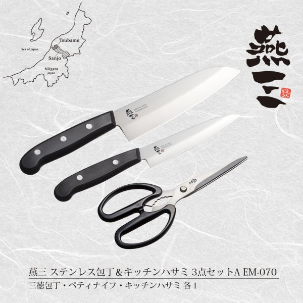 ギフトサービスについて【メール便(クリックポスト)の配送について】※こちらの商品は、[メール便(クリックポスト)]での発送となります。※他商品との同梱された場合は、[宅配便]での発送となり通常の送料が掛かります。※[他商品との同梱][代金引換][配達日時指定]でのご注文をお受けできません。※原則ポスト投函となります。通常の[宅配便]と違い配達までのお時間が掛かる場合があります。和平フレイズ●ペティナイフ商品サイズ(約):全長240mm、刃渡り130mm商品重量(約):60g●三徳包丁商品サイズ(約):全長285mm、刃渡り165mm商品重量(約):110g●キッチンハサミ商品サイズ(約):79×190×10mm商品重量(約):70g■生産地:日本■素材・成分:●ステンレス包丁/刀身:ステンレス刃物鋼、ハンドル:ポリプロピレン・ナイロン●キッチンハサミ/刃部:ステンレス刃物鋼、ハンドル:ABS樹脂■パッケージ:個別箱燕三(えんぞう)シリーズ早くから鍛冶が行われ、日本一のハウスウェア生産地へと成長した新潟県燕市。そこから道具作りの原点に立ち、先人への感謝と地域の誇りで生み出されたのが『燕三』シリーズです。●ステンレス包丁金物の街として有名な新潟県燕三条地区の職人が丹精込めて仕上げた包丁です。刀身は錆びに強く扱いやすいステンレス刃物鋼。衛生的な樹脂ハンドルを使用。刀身と三本の鋲でしっかり固定されているため抜けにくく、耐久性に優れます。●キッチンハサミ食材のカット、袋の開封、ギンナンやくるみの殻割り、ねじ込み式キャップの開閉など、多用途に使えます。刃の表面に細かいギザ刃加工を施してあるので、お肉や魚も滑らずに切れます。レトルト食品のツルツルしたビニール包装を切る時にも便利。●セット内容:三徳包丁・ペティナイフ・キッチンハサミ×各1商品特徴一覧1034486、和平フレイズ、生活雑貨 → 食器・キッチン → 調理器具 → 包丁・ナイフ → 包丁セット、4903779475009、通信販売、通販、販売、買う、購入、お店、売っている、ショッピング▼関連商品はこちら。燕三 ステンレス三徳包丁&キッチンハサミ EM-069 [日本製]燕三 ステンレス包丁&キッチンハサミ3点セットB EM-071 [日本製]燕三 ステンレス包丁&キッチンハサミ4点セット EM-072 [日本製]【燕三 ステンレス包丁&キッチンハサミ3点セットA EM-070 [日本製]】広告文責(有)イースクエアTEL:0120-532-772和平フレイズ●ペティナイフ商品サイズ(約):全長240mm、刃渡り130mm商品重量(約):60g●三徳包丁商品サイズ(約):全長285mm、刃渡り165mm商品重量(約):110g●キッチンハサミ商品サイズ(約):79×190×10mm商品重量(約):70g■生産地:日本■素材・成分:●ステンレス包丁/刀身:ステンレス刃物鋼、ハンドル:ポリプロピレン・ナイロン●キッチンハサミ/刃部:ステンレス刃物鋼、ハンドル:ABS樹脂■パッケージ:個別箱燕三(えんぞう)シリーズ早くから鍛冶が行われ、日本一のハウスウェア生産地へと成長した新潟県燕市。そこから道具作りの原点に立ち、先人への感謝と地域の誇りで生み出されたのが『燕三』シリーズです。●ステンレス包丁金物の街として有名な新潟県燕三条地区の職人が丹精込めて仕上げた包丁です。刀身は錆びに強く扱いやすいステンレス刃物鋼。衛生的な樹脂ハンドルを使用。刀身と三本の鋲でしっかり固定されているため抜けにくく、耐久性に優れます。●キッチンハサミ食材のカット、袋の開封、ギンナンやくるみの殻割り、ねじ込み式キャップの開閉など、多用途に使えます。刃の表面に細かいギザ刃加工を施してあるので、お肉や魚も滑らずに切れます。レトルト食品のツルツルしたビニール包装を切る時にも便利。●セット内容:三徳包丁・ペティナイフ・キッチンハサミ×各1※お客さま都合による、ご注文後の[キャンセル][変更][返品][交換]はお受けできませんのでご注意下さいませ。※当店では、すべての商品で在庫を持っておりません。記載の納期を必ずご確認ください。※ご注文いただいた場合でもメーカーの[在庫切れ][欠品][廃盤]などの理由で、[記載の納期より発送が遅れる][発送できない]場合がございます。その際は、当店よりご連絡させていただきます。あらかじめご了承ください。※リニューアル等により パッケージ、仕様、セット内容 が変更になる場合がございます。予めご了承下さい。【メール便(クリックポスト)の配送について】※こちらの商品は、[メール便(クリックポスト)]での発送となります。※他商品との同梱された場合は、[宅配便]での発送となり通常の送料が掛かります。※[他商品との同梱][代金引換][配達日時指定]でのご注文をお受けできません。※原則ポスト投函となります。通常の[宅配便]と違い配達までのお時間が掛かる場合があります。こちらの商品は【お取り寄せ(14営業日以内に発送予定)】となります。あらかじめご了承くださいませ。 7,583円 税込 送料込 カードOK イースクエア ![]() | ||