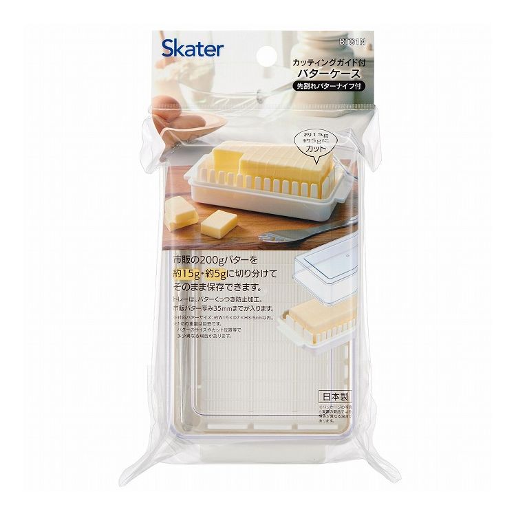カッター式バターケース(バターナイフ付)一度で20個(1個=約10g)にカット。そのまま保存できるステンレスバターカッター&ケースです。バターが取りやすい先割れナイフ付き。市販の200gのバター厚み約35mmまで入ります。※対応バターサイズ : 約横15×縦7×高3.5cm以内メーカー品番 : BTG2DXNN/597299内容物 : 19×10.7×4.8cmバターケース1個・本体…ポリプロピレン・蓋…AS樹脂・バターカッター、バターナイフ…ステンレス鋼・バターナイフ1本付生産国 : 日本箱サイズ : 19.5×11×5cm重量 : 260g入浴剤eおまけつき(商品とは関係ありません)別送 7,100円 税込 送料別 カードOK 創造生活館 ![]() | ||