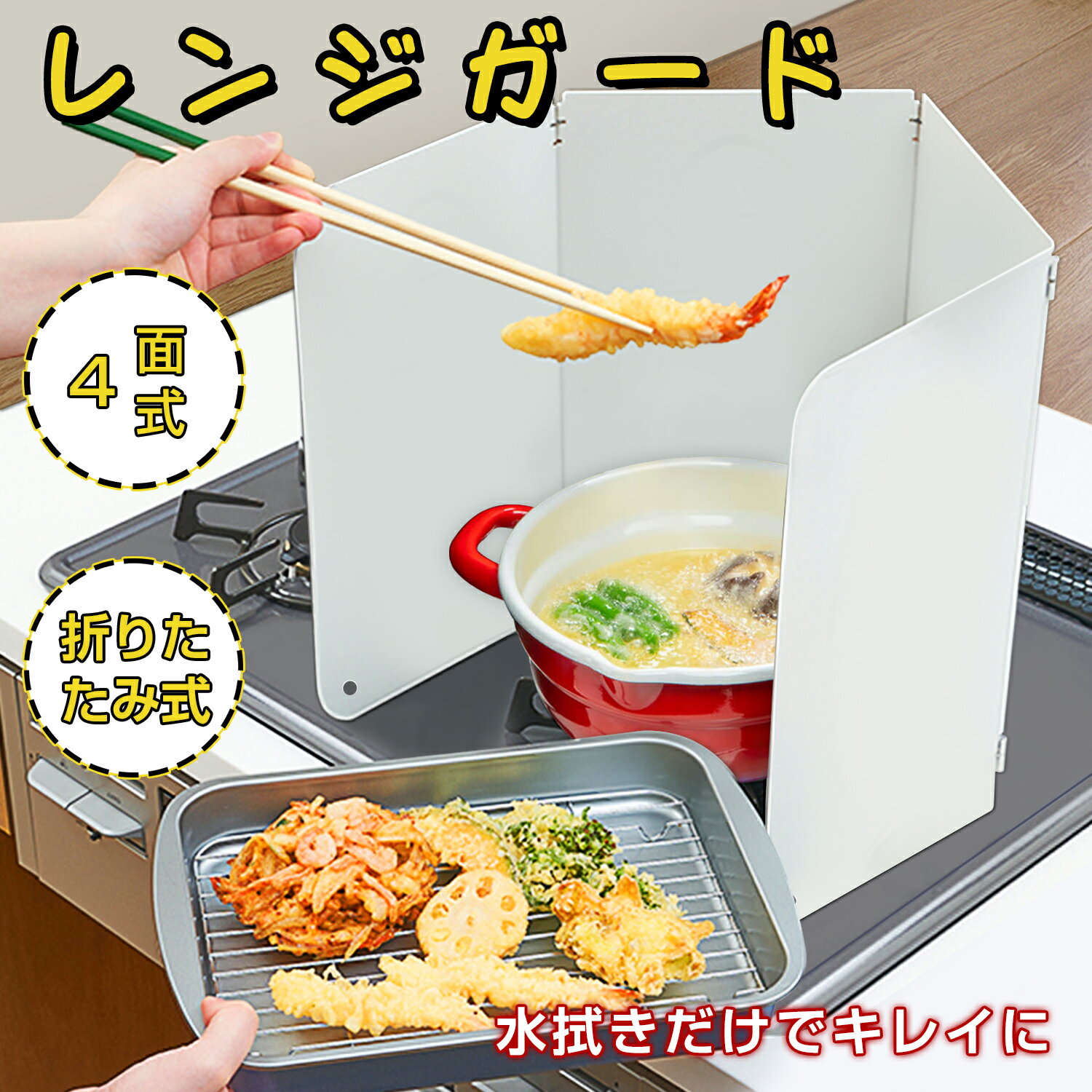 商品情報 製品名 レンジガード 製品スペック 【 材質 】 ステンレス 【サイズ】 広げた際のサイズ:約 72.5×0.4×33cm 折りたたんだ際のサイズ:約 18.5×1.5×33cm 【食洗機・乾燥機】 使用可能 【カラー】 アイボリー、アッシュグレー 製品特徴 ・高品質ステンレス仕様なので長く使える ・パネルのスキマを最小限に抑えているので油跳ねをしっかりガード ・端の厚み約4mmmなので安定感抜群 ・折りたためるので省スペース収納 ・4面構造だから置き方のバリエーシ... 1,980円 税込 送料込 カードOK レビュー22件 SASUKE楽天市場店 ![]() | ||