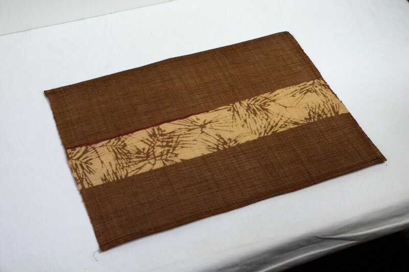 柿渋染めベースに松の葉模様をあしらったランチョンマットです。モダンな柄取りが洗練された印象です。ランチョンマットに限らず、花瓶敷きやテーブルセンター、オブジェの下敷きなど使い方はアイデア次第。 サイズ:45cm×33cm 素材:麻100% 使用染料(顔料):柿渋・玉渋・紅柄 お取扱・お手入れについてはこちらをご覧下さい。松の葉模様がシャープな印象 柿渋染めベースに松の葉模様をあしらったランチョンマットです。モダンな柄取りが洗練された印象です。ランチョンマットに限らず、花瓶敷きやテーブルセンター、オブジェの下敷きなど使い方はアイデア次第。 麻と呼ばれるものは非常に種類が多く、繊維用に用いられているものだけでも50〜60種におよびます。代表的なものに亜麻・苧麻(ちょま)・大 麻などがあります。その用途も繊維用に限らず食品や医薬品にいたるまで実に多岐にわ たっています。 みつる工芸では、良質の手引き手織の本麻を使用しております。本麻だから紡績にはないナチュラルな味わいが楽しめます。 2,640円 税込 送料別 カードOK レビュー2件 麻と柿渋染の専門店 みつる工芸 ![]() | ||