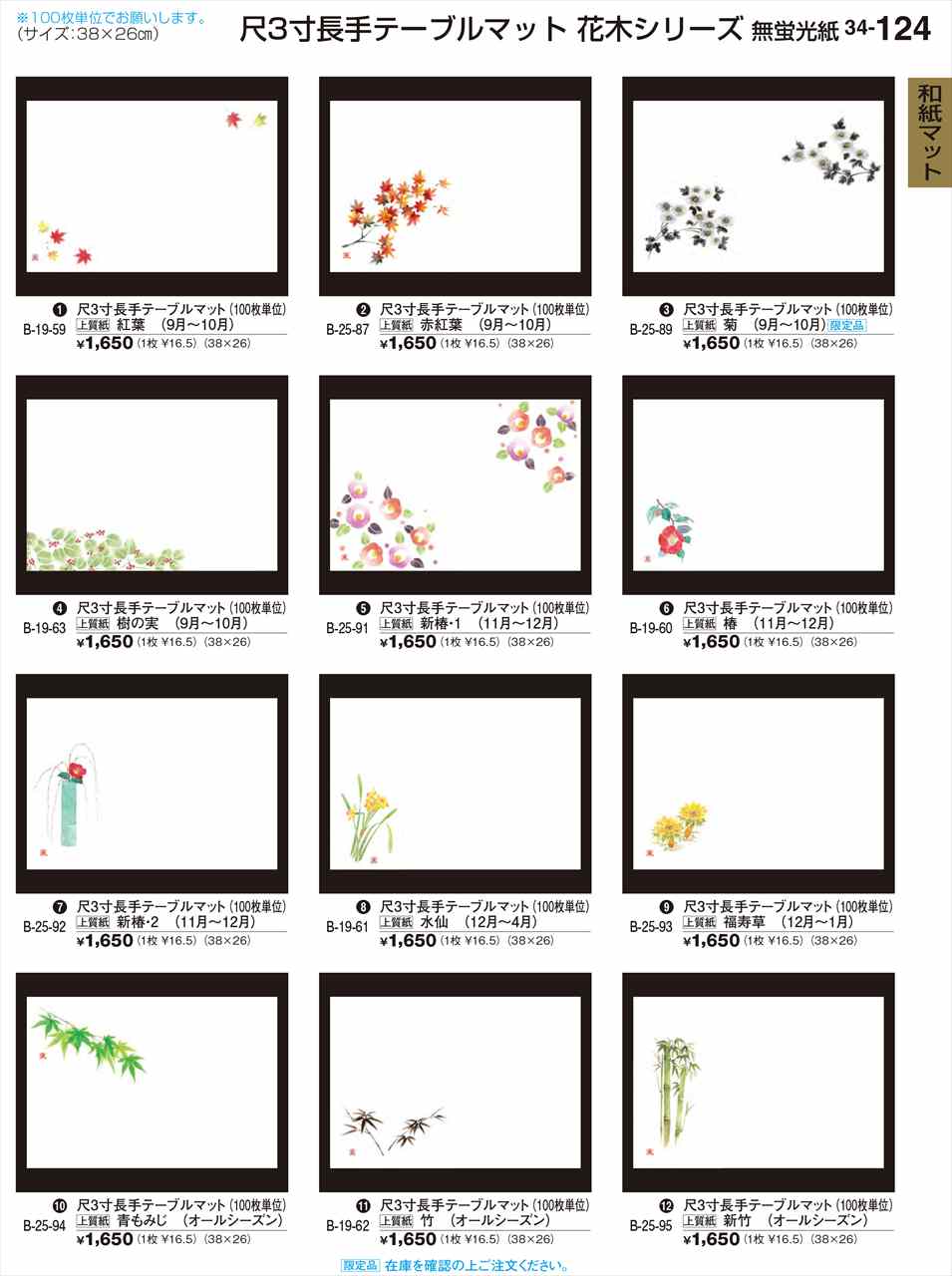 ●無蛍光和紙使用 ●高級和紙に季節感あふれる模様を施した、彩り華やかな尺三まっとです。 【外寸】335mm×370mm 5,852円 税込 送料込 カードOK OPEN キッチン ![]() | ||