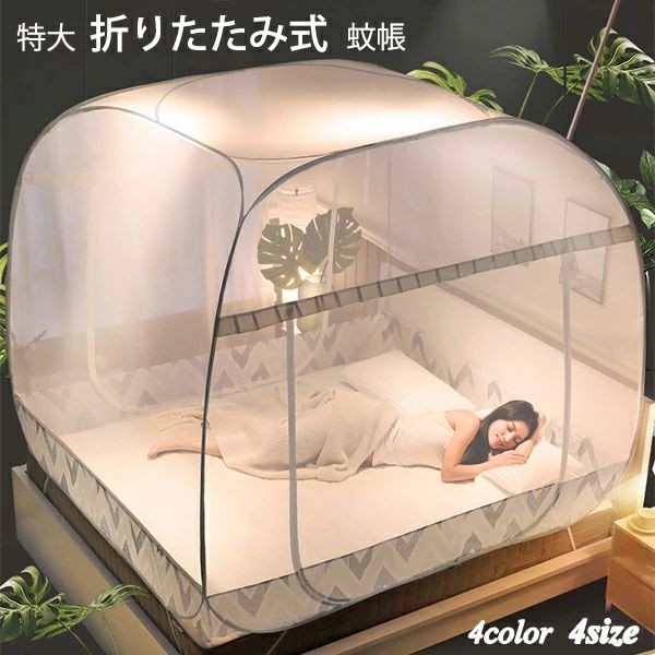 |  | 353.  蚊帳 キャンプ式 モスキートネット ワンタッチ 底面付き 虫除けネット 蚊よけ 虫除け 夏 蚊対策 ムカデ対策 全方位ガード 折りたたみ式 高さ170cm 家用 旅行 アウトドア用蚊帳 ドア設計 組み     ◆◇◆売れている秘密◆◇◆ 【全面メッシュで底面付き】下から侵入するムカデやゴキブリなどの害虫もしっかりシャットアウトしてくれますので、睡眠時も安心です。テント式で底までネットをしっかり張れるので、科学製品でなんか不安でしょう、これで物理的に遮断してぐっすり眠れそうで安心、しかも安全。それから、底もメッシュなので、通気性ばっちり。梅雨の時期でも、カビなどを心配することがありません。 【製品情報】蚊帳は全20色ご用意しております。展開サイズ:幅120/150/180/200×奥行200×高さ170cm。素材:蚊帳は丈夫なポリエステル素材、レース生地を採用して、化学的な臭気や有害物質は含まれていません。フレーム:スチール。無臭、肌触りの良い、洗いやすい、風通しが良い、耐久性に優れています。家族に最適な良質な睡眠を提供しております。 【細目なメッシュ素材】風を通して害虫は通さない細かなメッシュ素材を採用、細かいネットが蚊の侵入を防ぎます。これなら薬剤も使わなくて良いので小さなお子さんがいるご家庭でも安心です。柔らかいな色がお部屋の雰囲気に合わせやすく、長年にわたってご使用いただけます。三面にファスナー付き、とっても便利です。通気性のデザインは、蚊帳内で空気を循環させることができます。 【強靭なステント】ステントが全面的にアップグレードされ、蚊帳の堅牢性が大幅に増加し、丈夫で堅牢で、倒れにくく傾斜し、ベッドの落下を防止し、家族と赤ちゃんの安全を保護します。 【安心使用?品質保障】弊社の商品は全て品質保証があります。ご購入後、万が一商品は不具合がございましたらぜひ弊社までご連絡いただくようお願い申し上げます。弊社は全力で対応させていただきので、ぜひご安心してください。    ◆◇◆注意事項◆◇◆ご覧のモニターの環境、撮影環境により実物と色味が異なって見える場合がございます。湿った状態で他のものと擦り合わせると色が移る恐れがあります。濃色品の洗濯時は、白色、淡色と分けて洗ってください。説明 【製品情報】蚊帳は全20色ご用意しております。展開サイズ:幅120/150/180/200×奥行200×高さ170cm。素材:蚊帳は丈夫なポリエステル素材、レース生地を採用して、化学的な臭気や有害物質は含まれていません。フレーム:スチール。無臭、肌触りの良い、洗いやすい、風通しが良い、耐久性に優れています。家族に最適な良質な睡眠を提供しております。【全面メッシュで底面付き】下から侵入するムカデやゴキブリなどの害虫もしっかりシャットアウトしてくれますので、睡眠時も安心です。テント式で底までネットをしっかり張れるので、科学製品でなんか不安でしょう、これで物理的に遮断してぐっすり眠れそうで安心、しかも安全。それから、底もメッシュなので、通気性ばっちり。梅雨の時期でも、カビなどを心配することがありません。【細目なメッシュ素材】風を通して害虫は通さない細かなメッシュ素材を採用、細かいネットが蚊の侵入を防ぎます。これなら薬剤も使わなくて良いので小さなお子さんがいるご家庭でも安心です。柔らかいな色がお部屋の雰囲気に合わせやすく、長年にわたってご使用いただけます。三面にファスナー付き、とっても便利です。通気性のデザインは、蚊帳内で空気を循環させることができます。 10,345円税込 送料別 カードOK  大森麗萱  | |