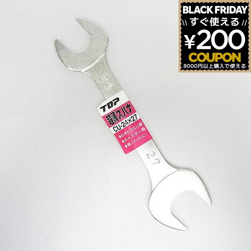 ↑メール便詳細を上記画像リンク先に記載しております。ご注文前に必ず一読下さい。 こちらの商品のメール便配送可能上限数は2個です。 【商品名】 トップ(TOP) スパナ 超薄型 CU-24×27 【商品説明】 ●わずか3ミリの超薄型のスパナです。キャスターなどの薄型のナットに最適。 呼びサイズ:24×27mm ●パッケージサイズ/縦:210mm横:55mm高さ:3mm 【商品詳細】 ●呼び寸法:24×27 ●呼び寸法:24×27 ●全長:210mm ●先端幅1:48.0mm ●先端幅2:54.0mm ●厚さ:3.0mm 757円 税込 送料別 カードOK レビュー2件 WHATNOT ![]() | ||