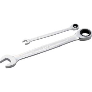 ストレート形状により本体が薄いため、深く奥まった狭い箇所での作業に威力を発揮します。薄型ラチェットヘッドには72枚ギアを装備しているため、少ない送り角度5度を実現しました。寸法/二面幅寸法:8mm、頭部幅(スパナ部):17.0mm、頭部幅(ラチェットめがね部):18.0mm、頭部厚み(スパナ部):4.7mm、頭部厚み(ラチェットめがね部):7.4mm、全長:144mm質量:30g 1,045円 税込 送料別 カードOK レビュー1件 あきばお〜楽天市場支店 ![]() | ||