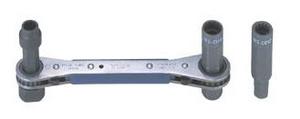 対辺寸法:本体10×17mm・ソケットWS-0812(8×12mm)・ソケットWS-1314(13×14mm) 全長:190mm 重量:415g <用途・特長> ・6種類のサイズのラチェットレンチです ・13・14側のソケットは取り外し可能で8・12のソケットを装着できます ・12mm・12.7mmの継足(持出)ソケットにも使用できます ・各種ラックの取り付け作業に最適です ・配管バンド・電路支持金具の脱着にも適しています ・本体プレートはさびにくく、強度と耐久性の高いステンレス製です ・ギア数18(20°送り) 各種、TOP工業の商品 ↓こちらをクリックにてご覧になれます↓ 10,175円 税込 送料別 カードOK レビュー1件 丸久金物 ![]() | ||