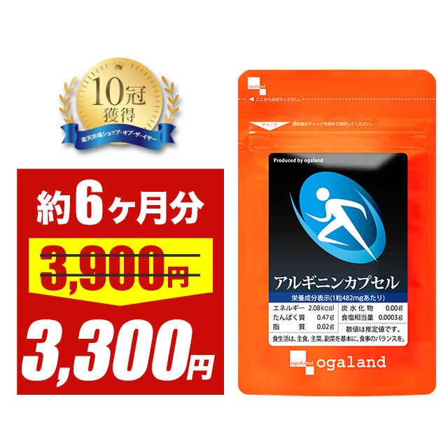 他の内容量はコチラ >> \ついでに購入!今週の100円サプリ/※5分おきに更新されます 商品名 アルギニンカプセル 名称 L-アルギニン含有加工食品 内容量 482mg×60カプセル(6個セット・約6ヶ月分) 原材料 デキストリン、L-アルギニン、ゼラチン、クエン酸、ステアリン酸カルシウム、カラメル色素、微粒酸化ケイ素※商品は原料由来の為、製造時期により色合いが多少異なる場合がございます。 お召し上がり方 1日に2〜4カプセルを目安にお召し上がりください... 3,300円 税込 送料込 カードOK レビュー19件 サプリ専門店 オーガランド ![]() | ||