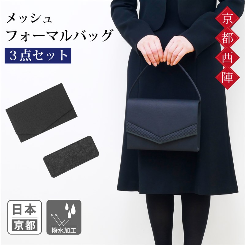 商品詳細商品説明フォーマルバッグ 3点セットは、上品な生地が特徴の女性らしさを感じさせ、さり気ないメッシュのワンポイトがお洒落なデザインです。職人が一本一本手作業で編み込みしています。使いやすさを重視したハードタイプで、軽量かつ持ちやすいのが魅力です。ブラックはフォーマルな雰囲気を演出します。また、マチ幅が広く、内側にはオープンポケットが2つ付いているので、小物も整理しやすいです。また背面にもポケットがあります。口元にはマグネットが付いており、中身が見えないのもポイントです。さらに、撥水加工が施されているので、雨の日も安心してご利用いただけます。デザイン性と機能性を兼ね備えたアイテムで、喪服や礼服などの大切な場面で活躍します。京都西陣で製造され、長い歳月の中で磨かれ、洗練されてきた伝統技術を生かし、専門の職人が手作業で1つ1つ作り上げています。派手な装飾や光沢のある素材を避け、伝統を重んじた"フォーマルブラック"の素材を使用しており、ご遺族の気持ちに寄り添う装いとして、心を込めてご提供いたします。品 名ブラックフォーマル メッシュバッグ開 閉マグネットポケット内:オープンポケット×1 外:オープンポケット×1素 材ポリエステル重 さ292g原産国日本商品説明フォーマルバッグ 3点セットは、上品な生地が特徴の女性らしさを感じさせ、さり気ないメッシュのワンポイトがお洒落なデザインです。職人が一本一本手作業で編み込みしています。使いやすさを重視したハードタイプで、軽量かつ持ちやすいのが魅力です。ブラックはフォーマルな雰囲気を演出します。また、マチ幅が広く、内側にはオープンポケットが2つ付いているので、小物も整理しやすいです。また背面にもポケットがあります。口元にはマグネットが付いており、中身が見えないのもポイントです。さらに、撥水加工が施されているので、雨の日も安心してご利用いただけます。デザイン性と機能性を兼ね備えたアイテムで、喪服や礼服などの大切な場面で活躍します。京都西陣で製造され、長い歳月の中で磨かれ、洗練されてきた伝統技術を生かし、専門の職人が手作業で1つ1つ作り上げています。派手な装飾や光沢のある素材を避け、伝統を重んじた"フォーマルブラック"の素材を使用しており、ご遺族の気持ちに寄り添う装いとして、心を込めてご提供いたします。品 名ブラックフォーマル メッシュバッグ開 閉マグネットポケット内:オープンポケット×1 外:オープンポケット×1素 材ポリエステルサイズ約W245mm×D50mm×H170mm重 さ292g原産国日本注意事項当商品は機械による生産過程において、どうしても生地を織る際の糸の継ぎ目や多少のほつれ,多少の汚れ等が生じている場合がございます。品質上の問題ではございませんので、こちらの件をご理解頂いた上でのご注文をお願い申し上げます。 皆様により良い商品をより安くご提供させて頂けますよう、ご注文完了後のキャンセル・及び不良品以外のご返品・交換はお受け致しておりません。 お申し込みの際は、サイズ・カラー等よくご確認の上、ご注文くださいますようお願い申し上げます。関連キーワードお呼ばれ お呼ばれドレス ゲストドレス 結婚式ドレス ドレス パーティ パーティー dress party パーティードレス パーティドレス パンツ パンツスーツ パンツスタイル パンツドレス サロペット フォーマル フォーマルドレス マタニティードレス マタニティドレス レディース レディースファッション レディス ワンピ ワンピース 結婚式ワンピース 大人 かわいい シック 上品 シンプル ふんわり ゆったり パーティーバッグ パーティーバック パーティバッグ パーティバック バッグ バック クラッチバッグ クラッチバック ショルダー ショルダーバッグ ショルダーバック 斜めがけ 斜めがけバッグ 斜めがけバック ハンドバッグ ハンドバック カバン 鞄 かばん サブバック サブバッグ セカンドバッグ パール 新作 7号 9号 11号 13号 XS S M LL L 2L XL XXL 大きいサイズ 小さいサイズ 大きい 大きめ 20代 30代 40代 50代 秋 秋冬 夏 春 春夏 冬 母の日 ドレスワンピース ワンピースドレス 春ワンピース 2次会 オフィス お宮参り 会食 結婚式 謝恩会 食事会 女子会 成人式 卒園式 デート 同窓会 同窓会 二次会 入園式 入学式 発表会 披露宴 演奏会 冠婚葬祭 婚活 七五三 卒業式 通勤 5分袖 7分袖 アメリカンスリーブ 七分袖 袖あり 袖付き 袖なし 長袖 ノースリーブ 半袖 ひざ上 膝上 ひざ下 膝下 ひざ丈 膝丈 ミディアム ミディアムドレス ミニ ミニドレス ミモレ丈 ロング丈 ロングドレス 五分袖 7分丈 Aライン オールインワン セットアップ セット タイト バルーン 体型カバー 二の腕カバー スレンダーライン ツーピース プリンセスライン ストレッチ チュール ナイロン パール ビーズ ビジュー プリーツ フリル ポリエステル リボン 透け感 セレブ 妊婦 ファッション 服 服装 ミセス sale セールフォーマルバッグ特集 9,845円 税込 送