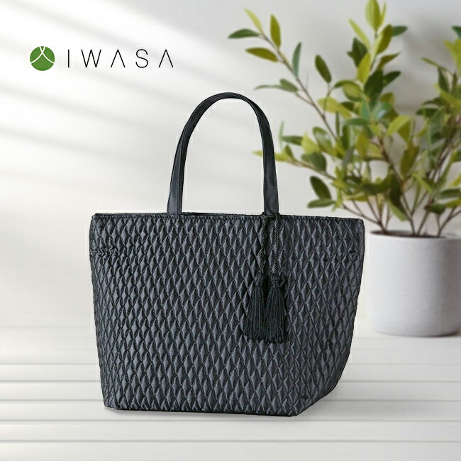 岩佐/IWASA/イワサ/タッセル付きキルティング手提げ/タッセル付きキルティング手提げ(大)/フォーマルバッグ/手提げ/ブラックフォーマル/フォーマル/バッグ/トートバッグ/トート/ソフトバッグ/サブバッグ/ファスナー付き/ファスナー/手持ち/大きめ/A4/A4サイズ/軽量/軽い/肩掛け/ハンドル/長め/キルティング/エレガント/上品/大人/黒/ブラック/タッセル付き/タッセル/お葬式/葬式/葬儀/法事/法要/通夜/告別式/お墓参り/お盆/初盆/お彼岸/冠婚葬祭/参観日/喪服/ブランド/MADE IN JAPAN/ハンドメイド/日本製/レディース/女性素材<表地>ポリエステル<裏地>ナイロン サイズ<本体>幅 上部 約 370 / 下部 270×高さ 約 280×マチ 約 125(mm)<ハンドル>高さ 約 215(mm)※サイズは当店計測サイズとなります。 商品により、若干の個体差が生じます。※当店のサイズ計測方法はこちら 重さ約 170g 生産国日本 仕様<内側>ポケット(S)×1<付属>タッセル×1底板×1 <購入前にご確認ください>・水・雨・汗・湿気などは、変色・色落ち・型崩れの原因となります。濡れた場合は、乾いた柔らかい布で押さえるようにして水気を取り、陰干ししてください。・ご使用されない際は、高温多湿の場所を避けて通気性のよい暗所にて保存下さい。防虫剤・香水などと一緒に保存されますと変色・変質・はがれの原因となりますのでおやめください。・水濡れ(雨・汗など)や日焼けによる色落ち、退色は避けられませんので、夏季、雨天でのご使用、また淡い色の服装に合わせる場合は十分にご注意ください。・こちらの商品に化粧箱は付属しておりません。予めご了承ください。・極力実物に近い色味を再現しておりますが、モニター等の条件により画面上と実物では色味が異なって見える場合がございます。 もっと探す レディースフォーマルバッグ アイテムリストから探す IWASA イワサ ブランドリストから探す 6,600円 税込 送料込 カードOK ギャレリア Bag&Luggage ANNEX ![]() | ||