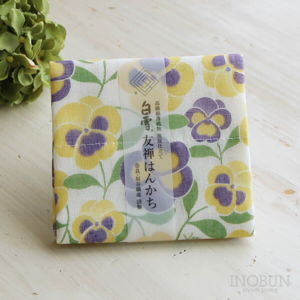 毎日のお出かけに、可愛らしく華やかなハンカチ*その昔、一人の天使がたいそう美しい花を見つけ、世の中に愛を広めるために三回キスをしました。すると、その花は天使の面影を残した三色のすみれとなったそうです。 パンジーは、三色すみれ・胡蝶草との名もあり、わたしたちにも馴染みのあるお花ですね。 ガーゼのように柔らかく、タオルのような吸水性。表面は友禅染の柄物、裏面はそれぞれの柄に合わせた色無地のリバーシブル仕立てになっています。 薄織物のため、糊張りをしています。ご使用前に約40℃のお湯で十分に糊を洗い落してお使いください。鹿児島産サツマ芋でんぷん糊を100%使用しております。お洗濯を繰り返すたび柔らかくなっていきます。 種類が豊富な白雪はんかちは、お出かけの服装に合わせたり、好きな柄で選ぶ楽しさも。使い心地の良さにいろんな柄をついつい集めたくなるはんかちです♪ 赤ちゃんのお口ふきや、子どもから大人まで幅広い世代の方におすすめ。季節の贈り物や、お祝いなど、ちょっとした贈り物にもどうぞ。※必ずお読み下さい!!単品のご注文に限らせて頂きます。カテゴリファッション > 服飾小物 > ハンドタオル・ハンカチカラーイエロー仕様・規格【メール便での配送につきまして】 白雪はんかちは12枚まで入ります。それ以上の枚数をご注文の場合、配送方法は【通常便】をお選びください。 【白雪はんかちのお届け日数につきまして】 ※当店に在庫がある場合は翌日出荷が可能ですが、ご注文数によっては、お取り寄せ(5日〜10日)になる場合がございます。 ※数が多いラッピングの場合、少々お時間をいただいております。お急ぎの場合は、注文時の備考欄に「ラッピングセット希望」とご入力ください。●サイズ:約30 x 30cm(縮率:約15%) ●素材:綿100% ●色落ち防止加工済み(酸素系漂白剤のみ使用可能) ※薄織物のため、糊張りをしています。鹿児島産サツマ芋澱粉なのでご安心下さい。 ※ご使用前にお湯で糊を十分に洗い落として下さい。 ※乾燥機のご使用はおやめください。【白雪友禅染はんかち モダンシリーズ パンジー】 その昔、一人の天使がたいそう美しい花を見つけ、世の中に愛を広めるために三回キスをしました。すると、その花は天使の面影を残した三色のすみれとなったそうです。 【洗濯・取り扱いについてのご注意】 ◆糊の落とし方 ・でんぷん糊は水には溶けにくい為、約40℃のお湯で手洗いしてください。お湯が濁らなくなるまで、何度かお湯を取り替えて落としてください。糊を落とさず洗濯機を使用すると、縁取りが外れる場合がございます。 ※糊が落ち切るまでは、濡れた状態で負荷がかかりますと縁取りが外れる場合がございます。干す際に、振り伸ばしをされませんようお気をつけくださいませ。 鹿児島産サツマ芋でんぷん糊を100%使用しております。でんぷんアレルギーでない限り、体に付着したり、口の中に入っても害を及ぼすことはありません。 ◆洗濯方法 ・洗濯の際は中性洗剤をご使用ください。固形洗剤をご使用の場合、蚊帳生地の目に詰まり残留する場合がございますのでご注意ください。洗濯機をご使用の際は、ネットに入れ弱水流で洗ってください。 ・ドラム式洗濯機は、少ない水でたたき洗いをすることにより、生地が著しく縮んだり、かたくなる場合がございますので、必ず手洗いモードで洗ってください。 ・但し、本来の風合は保ちにくい為、柔らかさを実感いただく為には手洗いがおすすめです。 ◆漂白剤の使用について ※友禅はんかちは、裏面の色が抜ける為、酸素系をご使用ください。 ◆乾燥機の使用について 極端に生地が縮み、かたくなりますので、ご使用はお止めください。 また、真夏の直射日光は、乾燥機同等の環境下となりますため、日差しが強い場合は、風通しのよい日陰に干してください。 528円 税込 送料別 カードOK レビュー1件 イノブンオンラインショップ ![]() | ||