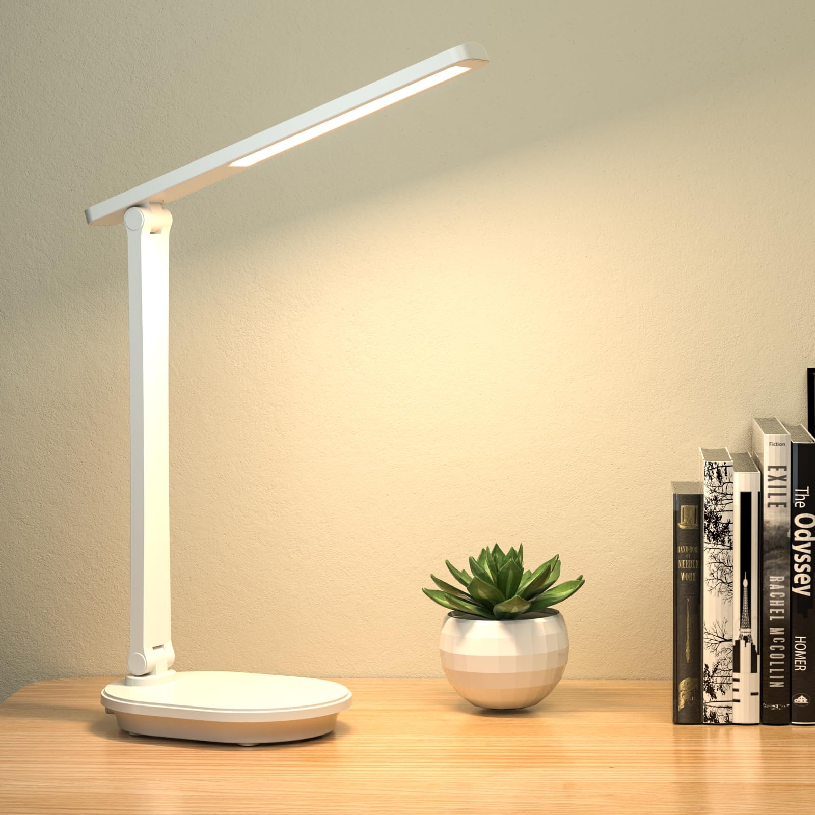 ? ?【9段階調光3段階調色スタンドライト】2024年の新型LEDデスクライトて、お好みの明るさを9段階に調節できます。読書灯は読書、仕事、リラックスタイムなどに適していっます。シーンに合わせて、最適な照明を自由に設定できる。勉強 ライトとして、目に優しく、長時間使っても快適な明るさを見つけることができる電気台卓上です。そして、スタンドライトは電球色(3000 K)、温白色(4500 K)、昼光色(6000 K)の3種類の色温度を選択することができます。そして、デスクライトッチに軽く触れるだけで点灯操作ができます。ライト ledのキーを長押しすると電気を消すことができます。これは、「+」と「-」をタップしたり長押ししたりすることで簡単に明るさを調整できる卓上ライトです。仕事でも休憩でも、さまざまなシーンに最適な照明環境を備えたデスク 用 ライトです。? ?【プラグイン両用メモリー機能】このスタンドライトはプラグイン両用の機能を備えており、卓上ライトは使用時の利便性を大きく高め。停電や災害などの緊急時には照明灯、非常灯、夜間灯として対応する。デスクライトの充電には2〜3時間、使用後には6時間ほどかかります(充電中は白のランプが点滅し、充電中は白のランプが常に点灯)。この卓上ライトには記憶機能があり、消灯後も前回使用時の明るさや色温度の設定を自動的に記憶することができます。ユーザーは使用するたびにスタンドのパラメータを手動で調整する必要はありません。ライト ledを開くと、これまでの設定に基づいてユーザーの好みの状態に自動的に調整され、快適な照明体験を提供します。? ?【多機能スタンドライト】多彩な機能を持つデスクライトです。書写キー:このキーをタッチして、書写モードに入り、ランプは常に点灯し、デスクライトの明るさは最も明るい。読書キー:このキーをタッチするとledスタンドライト 卓上は読書モードに入り、ランプは常に点灯し、読書灯の明るさは最も明るくなる。ライト ledのスイッチを短く押して3種類の色温度を調節します。遅延消灯キー:このキーを押すと電気スタンド ledの明るさが最も暗くなり、2分後にデスク ライトが自動的に閉じ、安心して離れ、暗くなることはありません。定刻休憩キー:45分後、スタンドライトの明るさが点滅し、少し休憩するように注意します(定刻に消灯するのではなく、休憩を注意するだけです)、さまざまな機能がさまざまなシーンに適用されます。? ?【目に優しいデスクライト高演色性】高品質で点滅しないライト ledを採用し、省エネ、平面発光の設計が可能で、多重陰影や点滅が発生しにくい。電気台卓上の光は柔らかく均一で、演色指数は80以上。目への負担を軽減し、長時間の仕事や勉強でも目が酸っぱくなりにくく、視覚疲労を軽減し、視力保護に役立つ折りたたみ卓上ライト、読書灯、ナイトライト、電気スタンド ledです。? ?【USB出力ポートType-C入力ポート】このデスクライトはUSB出力ポート(MAX:5 V/1 A)を採用して、照明入力もType-Cポートを採用しています。照明と充電を両立でき、モバイルバッテリーやUSBアダプタで、簡単に充電できるデスク用ライトです。机の上だけでなく、移動中や外出時にも、学習灯として活用する。? ?【包装内容】デスクライト本体*1、Type-Cケーブル*1、日本語取扱説明書*1。付属品がない場合は、お気軽にお問い合わせください。このデスク ライトは電源を入れて使用しなければなりません。スタンドライトの寿命を守るために、5 Vを超えない充電器を使用してください。? ?【アフターサービス、1年間の製品保証】卓上ライトの出荷時には、万全の体制で検査を行います。でも、万が一、製品に問題が起こっていますたら、メールで弊社に連絡してください。当社のデスクライトを購入して、優れた迅速的なカスタマーサービスはあります、ご心配しないでください。お客様に満足できる製品とアフターサービスを提供するために最善を尽くします。?注意:本製品には電源アダプタは付属していませんので、5 V/1 AのUSB-A電源アダプタを用意してください。手に水や汗がついている場合は、スタンドライトを触っても反応しない可能性があります。高周波音に敏感な人にとっては、微細な電流音が聞こえる可能性があります。2024新登場 LEDデスクライト 挿入電源と電池両用 、9段階調光 3段階調色言うまでもなく、仕事用や読書用のデスクランプとしては十分すぎるほどです、角度や向きを自由自在に調整可能で、目に優しい光を演出できる!Previous page? ?【9段階調光3段階調色スタンドライト】2024年の新型LEDデスクライトて、お好みの明るさを9段階に調節できます。読書灯は読書、仕事、リラックスタイムなどに適していっます。シーンに合わせて、最適な照明を自由に設定できる。勉強 ライトとして、目に優しく、長時間使っても快適な明るさを見つけることができる電気台卓上です。そして、スタンドライトは電球色(3000 K)、温白色(4500 K)、昼光色(6000 K)の3種類の