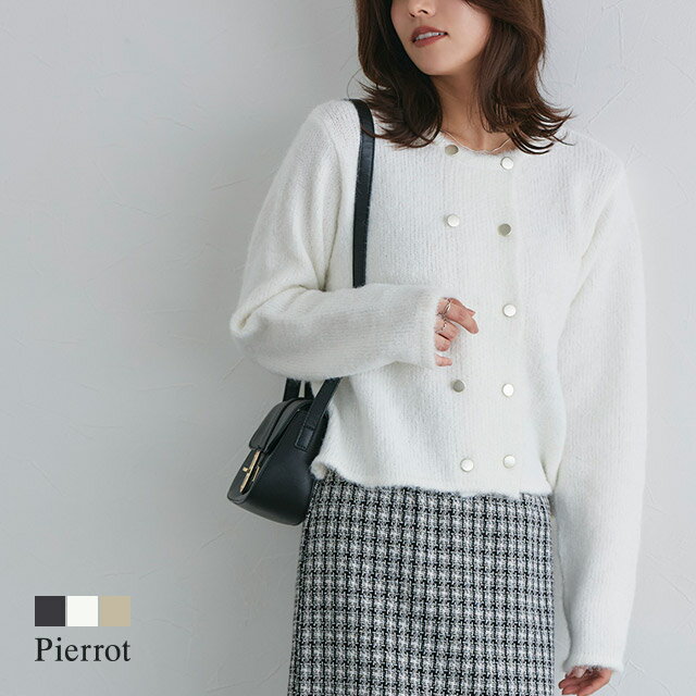 素材にこだわった一枚“ウールミックスダブルボタンニットカーディガン”柔らかくふんわりとしたウールミックスニットを使用し、見た目にもシーズンムード漂う一枚。杢感がスタイリングに程良いアクセントをプラスしてくれます。トレンドの短丈にシャンパンゴールドのボタンを2列あしらうことで、ジャケット見えするようなデザインが魅力。トップス着用をメインとしたアイテムですが、カーディガンとしても使いやすい丈感にこだわりました。【ブランド】Pierrot(ピエロ)pierr... 4,690円 税込 送料込 カードOK レビュー3件 Pierrot【ピエロ】 ![]() | ||