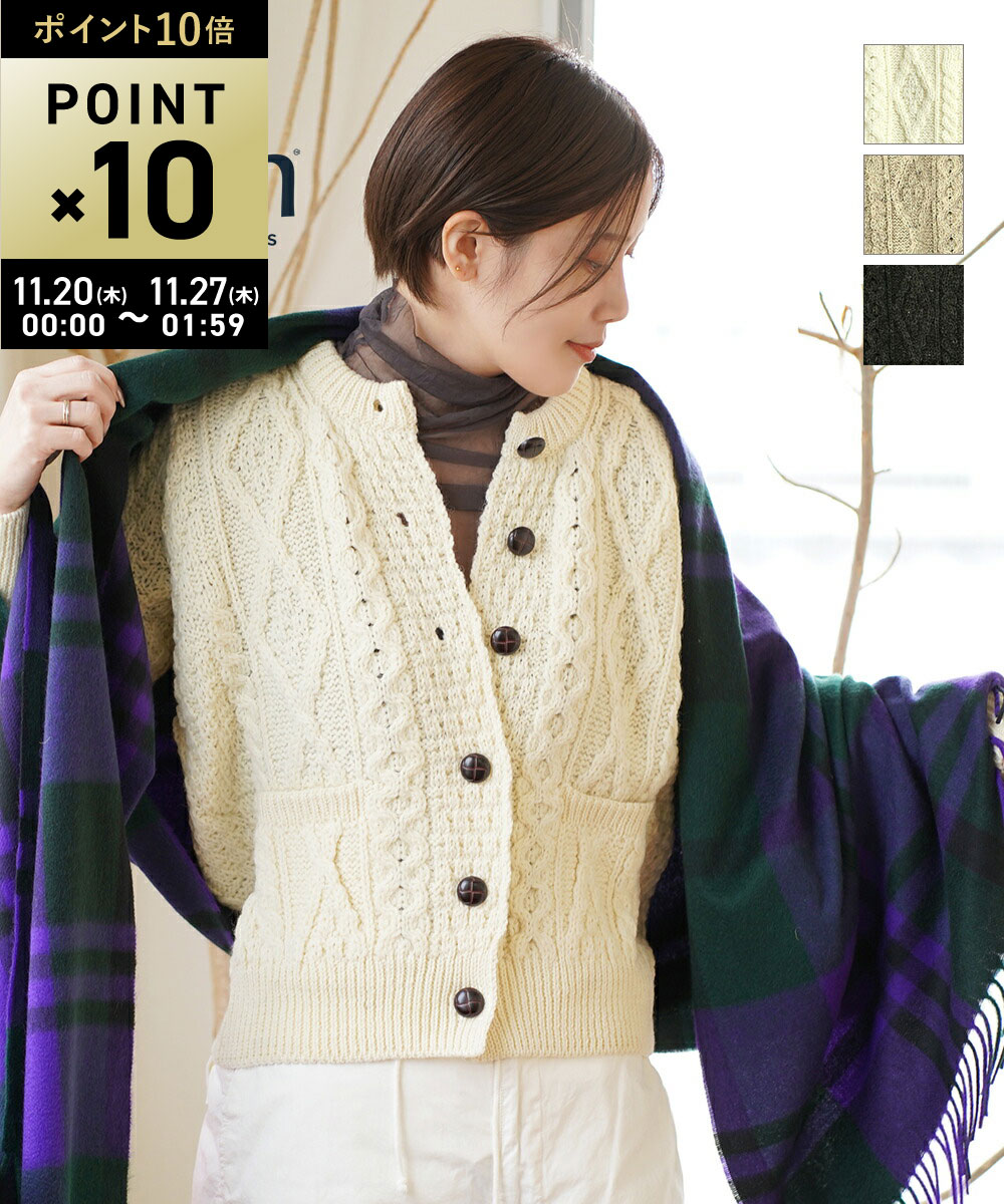 >>ギフト対応について 情報 Aran Woollen Mills(アランウーレンミルズ) ピュアニューウール アラン ニット カーディガン アラン編み クルーネック 丸首 ローゲージ ざっくり 厚手 ウール100% 秋冬 セーター ナチュラル カジュアル ニットカーディガン アランニット・CDF233002 【実寸】F(フリー)(着丈62cm、胸囲102cm、肩幅36cm、アームホール46cm、袖丈54cm、袖口16m) ※袖口はリブ仕様です。 ※ハンドメイドによりサイズに個体差がございます 【素材】ピュアニューウール100% タグ #AranWoollenMills#アランウーレンミルズ#カーディガン#クルーネック 楽天国際配送対象商品(海外配送)詳細はこちらです。 Rakuten International Shipping Item Details click here コード *U231023*【smtb-TK】【select-shop】【コンビニ受取対応商品】【B339】 メーカー希望小売価格はメーカー商品タグに基づいて掲載していますAran Woollen Mills(アランウーレンミルズ) ピュアニューウール アラン ニット カーディガン アラン編み クルーネック 丸首 ローゲージ ざっくり 厚手 ウール100% 秋冬 セーター ナチュラル カジュアル ニットカーディガン アランニットCDF233002 Item Images ※画像をクリックして拡大 Color Variation※クリックして拡大 Ht.Aran(910)Ht.Skiddow(920)Ht.Chalcoal(921) ボトムス / バッグ / シューズ:参考商品 / カラー:Ht.Aran(910) サイズ:M(M) モデル身長:160cm ブランド Aran Woollen Mills(アランウーレンミルズ) アイテム説明 伝統を継承するアイルランド最大のニットメーカー 1965年創立のニットメーカー「アランウーレンミルズ」。 アイルランドの原風景が残る西部のWestportに自社工場を持ち、 アイルランドの伝統を残しながらトレンドを取り入れたニットウェアに定評があります。 毎年大人気の定番ニット しっかり肉厚のウールで編み上げられた、保温性抜群のニットカーディガン。 数種類のアラン模様のパターンを組み合わせてデザインされたこちらのアイテムは、 毎年好評の定番ニットです。 素朴でナチュラルな風合い 素材に使われているのはピュアニューウールで、1年以内に刈り取られた羊毛が使われています。 大変肌触りの良い柔らかい素材なので、着心地の良い一着◎ 羊毛が持つ本来の毛の色を活かした、素朴でナチュラルな風合いも特徴です。 同素材でプルオーバータイプもございます。 愛らしい表情 ざっくりとしたアラン模様に、フロントのコロンとしたボタンが 可愛らしいデザイン。 着てみると丸みのある柔らかなフォルムで、カジュアルな着こなしも品良くまとまります。 隙間のある編み柄で通気性も良く、動作を妨げない優れた伸縮性に加え、 素朴で流行に左右されないデザインとカラーで、長く愛用していただけます。 アイテムサイズ M(M)(着丈62cm、胸囲102cm、肩幅36cm、アームホール46cm、袖丈54cm、袖口16m) ※袖口はリブ仕様です。 ※ハンドメイドによりサイズに個体差がございます >>サイズガイドはこちら。 アイテム詳細 素材:ピュアニューウール100% 重さ:640g 裏地:なし 生地の伸縮性:あり 生地の透け感:編み目からはあり 生産国:Ireland 洗濯表示 注意点 ※ハンドメイド商品のため、商品の編み上がりなどに若干の個体差がございます。 採寸サイズは大体の標準値となりますのでどうぞご了承ください。 ※素材に動物性素材特有のにおいが感じられます。予めご理解・ご了承くださいませ。 ※衿裏のタグについて 生産ロットにより一部デザイン等に個体差がございますが、すべて正規品のためご安心くださいませ。 ※モニターの発色の具合によって実際のものと色が異なる場合がございます。 着用モデル 身長:160cm 洋服のサイズ:S~M(Sより) ボトムサイズ:S~M(Sより) 足のサイズ:24.0cm モデル着用サイズ:M 取り扱い店 Palladiana(パラディアーナ) 17,600円 税込 送料込 カードOK レビュー15件 etre!par bleu comme bleu ![]() | ||