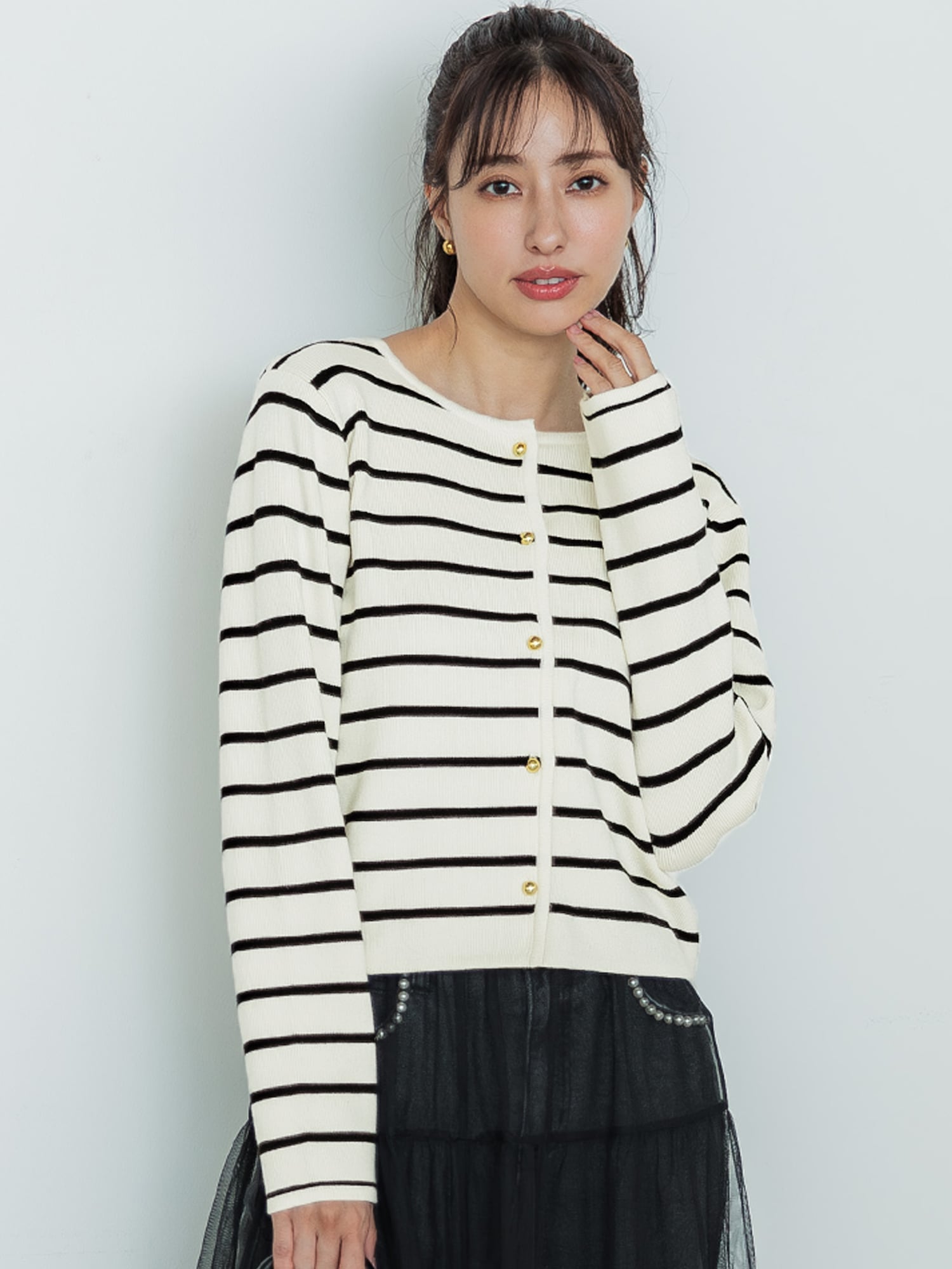 商品詳細 商品説明 ・ゴールド釦がアクセントになったクルーネックニットカーディガン。 ・少しコクーンになった袖デザインが可愛い1枚です。 ・ジャケットのようにも着用できる万能アイテム。 ・高見えするしっかりとした素材感もポイント。 ・コンパクトサイズに見えますが適度なゆとりがあるので着心地も◎ サイズ / 単位(約cm) 【S】着丈:51、肩幅:47、袖丈:52、アームホール:46、バスト:104、裾幅:51 【M】着丈:53、肩幅:49、袖丈:53、アームホール:48、バスト:108、裾幅:53 ◆当店のサイズ表記について ※製造工程の関係上、各採寸箇所実寸(平置き)より【約-3cm~+3cm】程度は誤差の許容範囲とさせて頂いております。 素材 アクリル 100% 洗濯表示 洗濯表示について 伸縮性 あり 透け感 なし 生産国 中国 model ◆model01165cm B:79cm W:57cm H:89cm Shoes:24.5cm着用 / サイズ:M カラー:ボーダー/オフホワイト、ライトベージュ、グレー、レッド、ブラック◆model02163cm B:73cm W:60cm H:82cm着用 / サイズ:M カラー:オフホワイト MDL00284/MDL00228 ご購入前に必ずご確認ください この製品は素材の特性上引っ掛けが生じやすい面があります。表面の粗い物に擦ったり、バッグやベルト、先の鋭い物にひっかけますとささくれや糸が浮き易く、切れる事もあります。着用、着脱の際はベルト、バッグ、アクセサリー等の金具や突起物にご注意下さい。 生産時期により、予告なくデザインの仕様やカラーの色味、素材が変更される場合がございます。 当商品は機械による生産の過程上、どうしても"生地を織る際の糸の継ぎ目"や多少の"ほつれ"、他繊維の"混紡"、素材によるネップ・色ムラが生じる場合がございます。また、同商品でも、形・サイズや柄・生地感に多少の"誤差"が生じる場合がございます。 照明等の撮影環境により、モデル着用画像は若干お色味が異なって見えますので、商品カラー画像をご確認ください。(お客様のモニター環境により、実際のお色味と多少異なる場合がございます) 当商品がすべて畳んだ状態での輸送・保管・配送となります為、商品の素材によりましては、開封時シワが生じる場合がございます。 サイズは、実寸サイズを測っているため多少誤差がでる場合がございます。(商品ページの表記とメーカータグのサイズとは異なる場合がございます) 商品により、色落ち・色移りがある場合がございます。漂白剤は使用しないでください。 素材の性質上、染料の匂いが強いものがございます。 商品の在庫につきまして、管理には万全を期してますが、姉妹店と在庫を共有しております為、ご注文のタイミングや、検品時の不良品の発覚等により商品をご用意出来ない場合がございます。 4,939円 税込 送料別 カードOK レビュー10件 titivate(ティティベイト) ![]() | ||