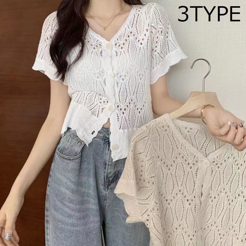 ■素材:コットン100%■寸法:着丈 44cm 身幅 47cm 裾幅 48cm 肩幅 32cm AH 24cm 袖丈 14cm 袖口幅 20cm 前下がり 8cm■サイズ:A-パンチングレース、B-フラワーレース、C-ウェーブレース■カラー:オフホワイト、アイボリー■商品説明:●全2色!3タイプ!ショート丈クロシェ編みカーディガン●かぎ編みレースの優しい透け感とナチュラルな素材感が魅力のカーディガン。●トレンドのショート丈でコーデのバランスが取りやすく、いつものボトムスに合わせるだけで新鮮な印象に。●1点投入で季節感のある装いが完成します。●ざっくりした編み立てが表情豊かな透かし編みデザイン。程よい肌見せが、ヘルシーで女性らしい着こなしを演出します。●印象が異なる3タイプからお選びいただけます。●上品な雰囲気をプラスするVネック。フェミニンなデザインでも甘く見え過ぎず、大人可愛く着用できるポイント◎●コーディネートのバランスが取りやすいショート丈。●スタイルアップしやすい丈感で、お持ちのボトムスやワンピースに重ねるだけで脚長に見せてくれます。●ナチュラルな風合いが魅力のコットンレース。さらっと着用できる涼し気な素材感で、真夏も蒸れずに快適◎※MADE IN CHINA(中国製)【注意事項】※平置き・メジャー採寸ですので若干の誤差が生じる場合がございます。※撮影時のライティング、ご覧になっているモニター・pc環境により実際の商品と色味が異なって見える場合がございます。※機械による生産過程において商品によっては染料の性質上、多少の生地を織る際の糸の継ぎ目・繊維が混紡・ほつれ・接着剤付着・臭い等が生じる場合が御座います。※生地や素材の特性上、匂いが感じられるものもございますが陰干しなどで匂いはほとんど感じられなくなります。※商品をお安く提供させて頂く為、検品後のアイロン掛けは省略させて頂いております簡易梱包の為、たたみシワがあると思いますが、ご了承ください。商品管理には十分に心がけておりますが、お届けした商品が万が一不良または注文と異なるお品だった場合、お手数ですがマイページ内の注文履歴より、お問い合わせをお願いいたします。(ブランド側へお客様の情報が開示されていないため、恐れ入りますが上記以外の方法でのご対応は出来かねますのでご了承ください。)注意事項の内容を予めご了承の上、お買い求めくださいますようお願い致します。返品・交換について購入後の交換は受け付けておりません。予めご了承ください。返品を希望される場合は購入履歴一覧の「ショップへの問い合わせ」よりお問い合わせください。=========================複数配送先指定について1件の注文に対して、異なる住所への配送は対応出来かねます。恐れ入りますが、異なる住所へ配送をご希望の場合、配送先毎に分けて注文いただきますようお願い申し上げます。【トップスWOMEN】オフホワイト(パンチングレース) アイボリー(パンチングレース) オフホワイト(フラワーレース) アイボリー(フラワーレース) オフホワイト(ウェーブレース) アイボリー(ウェーブレース) ワンサイズ 1,364円 税込 送料別 カードOK レビュー4件 SHOPLIST ![]() | ||