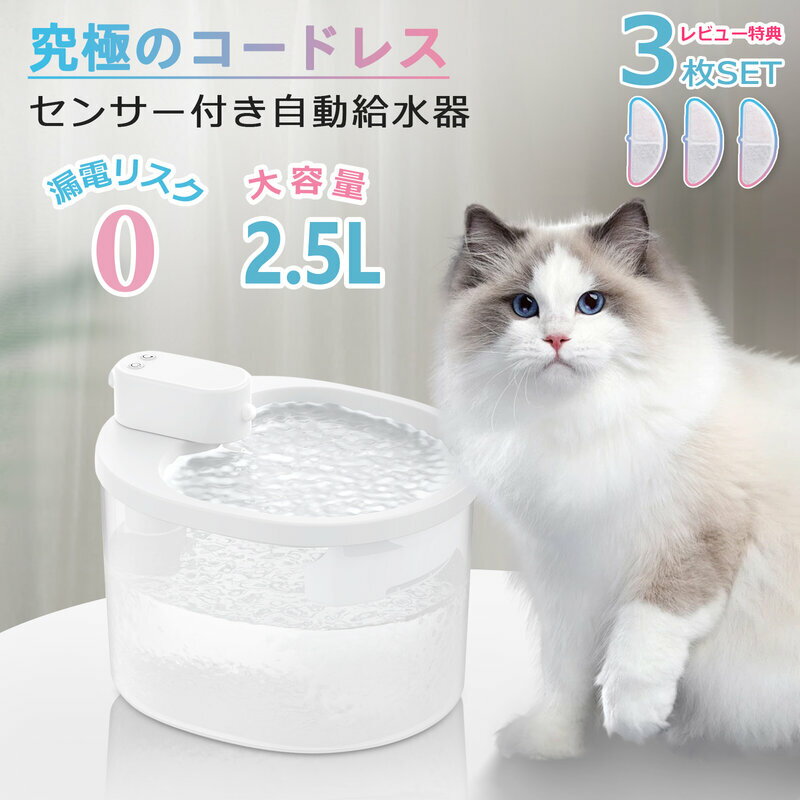 商品仕様【商品名】:コードレス自動給水器【サイズ】:約23x27x18cm【容量】:2500ML【重量】:約500g【電源】:充電式(2200mAh)【素材】:ABS+PP+シリコン【対象】:猫/小型中型犬商品紹介【センサー付きコードレス設計】コードと本体を完全分離。お手入れがラクラクで、コードを噛む心配も漏電リスクもありません。内蔵バッテリーとType-C充電対応で、最長120日間の連続使用が可能。リビングやキャットタワー、ケージなど、どこでも自由に設置でき、出張や旅行中も愛猫に新鮮な水を提供します。【4層浄水フィルターで安心&安全】抑菌シェル、イオン交換樹脂、KDF浄水、石英砂、天然ヤシ殻活性炭、高密度PP綿を採用。不純物、臭い、重金属、塩素を効果的に除去し、常に清潔で美味しい水を提供します。フィルターとスポンジは定期的に交換可能で、ペットの健康をしっかりサポート。【120°赤外線センサー&3モード給水】120°広角赤外線センサー搭載で、ペットが近づくと自動給水を開始。好奇心を刺激する流れる水で、飲水量を自然に増やします。さらに、30分間隔または1時間間隔のタイマー給水モードも選択可能。ペットの生活リズムに合わせた給水が実現します。【超静音設計で安眠をサポート】10dB以下の低騒音ポンプを搭載。夜間でも静かで、ペットと飼い主の安眠を妨げません。滑り止め付き設計で、いたずら好きな猫ちゃんにも安心です。【省エネ設計&簡単お手入れ】自動循環機能で常に新鮮な水をキープ。本体は分解可能で、洗いやすく清潔を維持できます。【ギフトにも最適】シンプルでスタイリッシュなデザインは、リビングに馴染みます。クリスマスや誕生日のプレゼントとしても喜ばれます。注意事項本製品は急速充電器をご使用いただきますと、故障の原因となる場合がございます。恐れ入りますが、通常の充電器をご使用くださいますようお願い申し上げます。お客様がご利用のモニターの設定及び特性により、実際の商品とは色味が異なる場合がございます。弊社の商品は一年の保証期間がございます、ご使用中万が一何か不具合と不明な点がございましたら、遠慮なく弊社にご連絡ください。商品仕様【商品名】:コードレス自動給水器【サイズ】:約23x27x18cm【容量】:2500ML【重量】:約500g【電源】:充電式(2200mAh)【素材】:ABS+PP+シリコン【対象】:猫/小型中型犬商品紹介【センサー付きコードレス設計】コードと本体を完全分離。お手入れがラクラクで、コードを噛む心配も漏電リスクもありません。内蔵バッテリーとType-C充電対応で、最長120日間の連続使用が可能。リビングやキャットタワー、ケージなど、どこでも自由に設置でき、出張や旅行中も愛猫に新鮮な水を提供します。【4層浄水フィルターで安心&安全】抑菌シェル、イオン交換樹脂、KDF浄水、石英砂、天然ヤシ殻活性炭、高密度PP綿を採用。不純物、臭い、重金属、塩素を効果的に除去し、常に清潔で美味しい水を提供します。フィルターとスポンジは定期的に交換可能で、ペットの健康をしっかりサポート。【120°赤外線センサー&3モード給水】120°広角赤外線センサー搭載で、ペットが近づくと自動給水を開始。好奇心を刺激する流れる水で、飲水量を自然に増やします。さらに、30分間隔または1時間間隔のタイマー給水モードも選択可能。ペットの生活リズムに合わせた給水が実現します。【超静音設計で安眠をサポート】10dB以下の低騒音ポンプを搭載。夜間でも静かで、ペットと飼い主の安眠を妨げません。滑り止め付き設計で、いたずら好きな猫ちゃんにも安心です。【省エネ設計&簡単お手入れ】自動循環機能で常に新鮮な水をキープ。本体は分解可能で、洗いやすく清潔を維持できます。【ギフトにも最適】シンプルでスタイリッシュなデザインは、リビングに馴染みます。クリスマスや誕生日のプレゼントとしても喜ばれます。注意事項本製品は急速充電器をご使用いただきますと、故障の原因となる場合がございます。恐れ入りますが、通常の充電器をご使用くださいますようお願い申し上げます。お客様がご利用のモニターの設定及び特性により、実際の商品とは色味が異なる場合がございます。弊社の商品は一年の保証期間がございます、ご使用中万が一何か不具合と不明な点がございましたら、遠慮なく弊社にご連絡ください。 3,640円 税込 送料別 カードOK ヒマワリヤ ![]() | ||