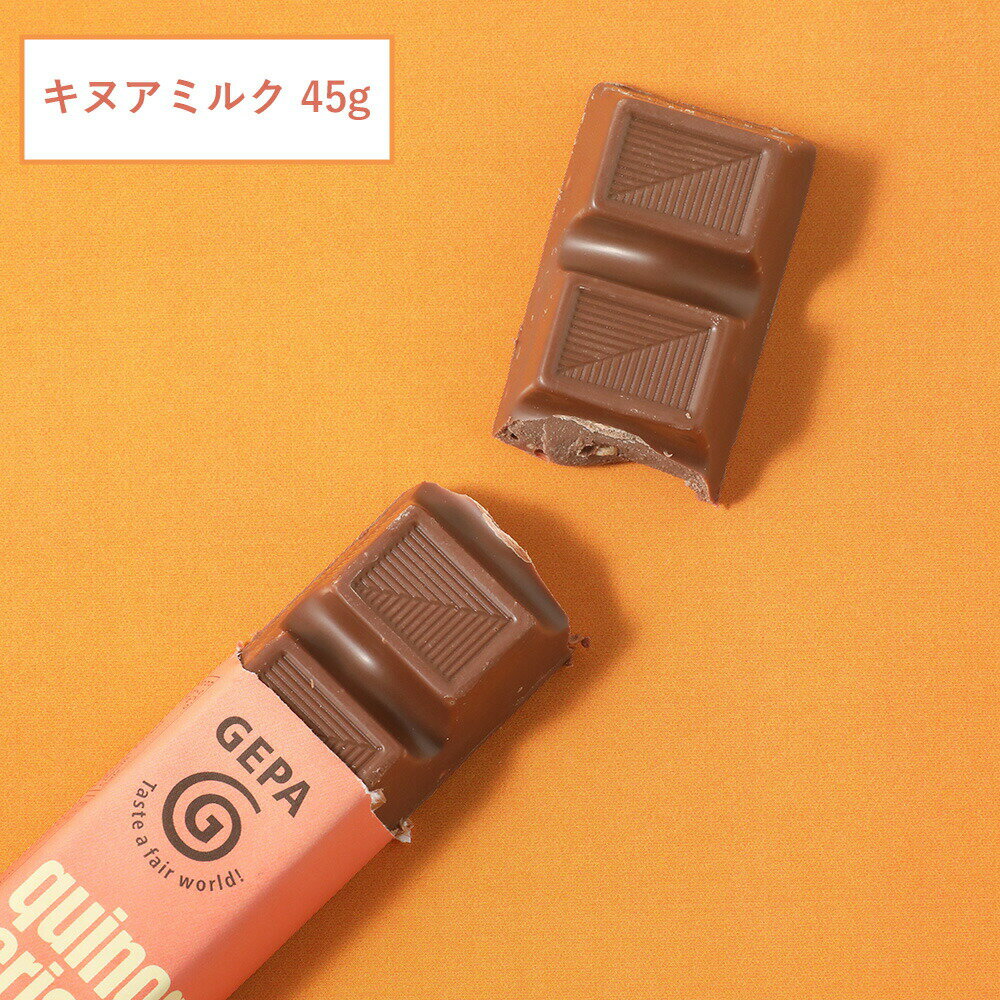 GEPA(ゲパ)ビオ キヌアミルクチョコレート バー 45g 小腹がすいたときにも、一息つきたいときにも。机に忍ばせておきたいチョコレートバー。 ゲパ社は1975年にドイツに設立され、創業以来40年以上に渡り、フェアトレードのパイオニア的存在として発展途上国の生産者をサポートする活動を続けてきました。生産者を大切なパートナーとする一貫した哲学を持ち、世界フェアトレード機構(WFTO)や独自基準である「フェアトレードプラス」の確立など、フェアトレードの最低基準を大幅に超えた活動に取り組んできました。小腹がすいたときに手軽に食べられるチョコレートバーは、ミネラルや必須アミノ酸などを豊富に含んだスーパーフード「キヌア」の食感と香りを楽しめます。キヌアのプチプチ感と程よい甘さのチョコレートが相性抜群です。 | 世界中に支援の輪を 48ヵ国、160組織以上との取引数を誇り、世界中に支援の輪を広げ続けています。取得した認証は、生産者や消費者とまっすぐ向き合っている証。各パッケージにはそんな生産者の顔がプリントされています。 ※商品ごとに取得している認証マークが異なりますので、ご了承ください。 ビオ キヌアミルクチョコレート バー 持ち歩きやすいチョコレートバーです。キヌアやアーモンドなどヘルシー素材をたっぷり使い、様々な食感とフレーバーが楽しめます。健康意識が高い方にもぜひ手に取って、試してほしいチョコレートです。 同ブランド別のアイテムはこちら その他「チョコレート」はこちら SPEC 商品名:ビオ キヌアミルクチョコレート バー 内容量:45g 原材料:粗製糖、全粉乳、ココアバター、カカオマス、キヌアクリスプ(米粉、キヌア、甘蔗糖)/バニラ香料 栄養成分表示(45gあたり) 熱量 250kcal たんぱく質 3.9g 脂質 16.6g 炭水化物 21.1g 食塩相当量 0.11g 保存方法:直射日光、高温多湿を避け20℃以下の冷暗所に保存 原産国:ドイツ 輸入元:株式会社おもちゃ箱 区分:食品 広告文責:(株)エル・ローズ TEL 0120-291-410 ご注意:・本品はそば、小麦、オレンジ、カシューナッツ、くるみ、アーモンドを含む製品と共通の設備で製造しています。・直射日光を避け、涼しい場所で保管してください。・チョコレートは高温になると油脂分が溶け、冷えて白く固まる事があります。食べてもさしつかえありませんが、風味は劣ります。・開封後はお早めにお召し上がりください。 こちらの商品はネコポスでのお届けです。・ポスト投函 / 日時指定不可・他商品を同時購入の場合は宅配便でのお届けになります。※お届けする商品の梱包には十分に注意をしておりますが、配送時の衝撃などにより、割れや欠けが生じる場合がございますので、予めご了承ください。 702円 税込 送料別 カードOK レビュー1件 BITONE by SANTE LABO ![]() | ||