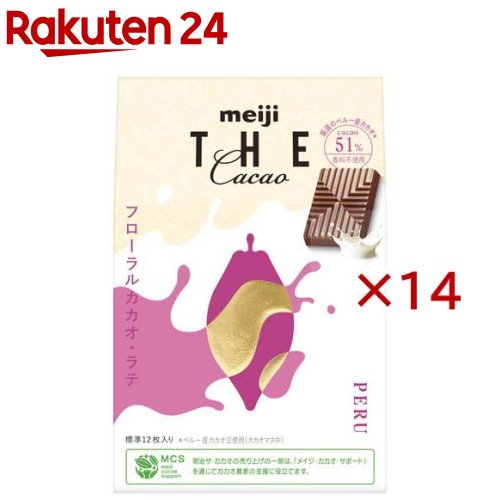 お店TOP>フード>お菓子>チョコレート>チョコレート>ザ・カカオフローラルカカオラテ (12枚入×14セット)【ザ・カカオフローラルカカオラテの商品詳細】●明治が追求しつづけたカカオに対するこだわりをもって仕上げた専門店にもひけをとらない品質。●手に取りやすい価格帯と身近な場所で手に入れることができる。●カカオの香味によって異なる様々なあじわいや組み合わせを体験できる。【品名・名称】チョコレート【ザ・カカオフローラルカカオラテの原材料】カカオマス(国内製造)、砂糖、ココアバター、全粉乳、脱脂粉乳/乳化剤、(一部に乳成分・大豆を含む)【栄養成分】1枚(3.5g)当たりエネルギー:21kcal、たんぱく質:0.3g、脂質:1.5g、炭水化物:1.6g、ナトリウム:2g、食塩相当量:0.005g【アレルギー物質】乳成分・大豆【保存方法】28度以下の涼しい場所で保存してください。【原産国】日本【発売元、製造元、輸入元又は販売元】明治※説明文は単品の内容です。商品に関するお問い合わせは、下記までお願いいたします。受付時間:10:00-16:00(土日祝、メーデー、年末年始除く)おかし:0120-041-082一般食品:0120-370-369ベビー:0120-358-369栄養食品・流動食(メイバランス他):0120-201-369スポーツ(ヴァーム他)・美容・健康:0120-858-660飲料:0120-598-369リニューアルに伴い、パッケージ・内容等予告なく変更する場合がございます。予めご了承ください。・単品JAN:4902777116129明治東京都中央区京橋2-2-1 ※お問合せ番号は商品詳細参照広告文責:楽天グループ株式会社電話:050-5577-5043[お菓子] 5,304円 税込 送料別 カードOK 楽天24 ![]() | ||