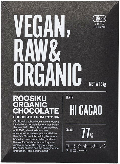 【オーガニック・ビーガン・ロー】の三拍子そろった究極のチョコレート。乳製品不使用とは思えない、驚きの食べやすさ。乳アレルギーの方にもおすすめです。 ☆使用しているベリーはエストニア原産の自生種(ワイルド)。 ☆42℃以下に温度管理し、時間をかけて丁寧につくりました。 ☆EUオーガニック認証を取得し、動物性原材料一切不使用のビーガンチョコレート。 ☆原材料のカカオは、収穫量5%以下、ペルー原産の希少品種カカオ・クリオロのみを使用。 ☆伝統的な石臼で原料を混ぜ合わせるハンドクラフト(手作業)製造。 ☆ヴィ—ガン(動物性不使用)、低糖質、環境配慮をポリシーにしています。 ☆包装パッケージにおいても環境配慮製品を使用。 〇原材料:有機カカオバター、有機カカオパウダー、有機ココナッツパームシュガー、有機ヘーゼルナッツ、有機バニラ 〇原産国:北欧・エストニア 〇賞味期限:1年 〇栄養成分:37gあたり ・エネルギー 224kcal ・たんぱく質 2.4g ・脂質 15.9g ・炭水化物 17.6g ・食塩相当量 0.006g 767円 税込 送料別 カードOK 有機家 ![]() | ||