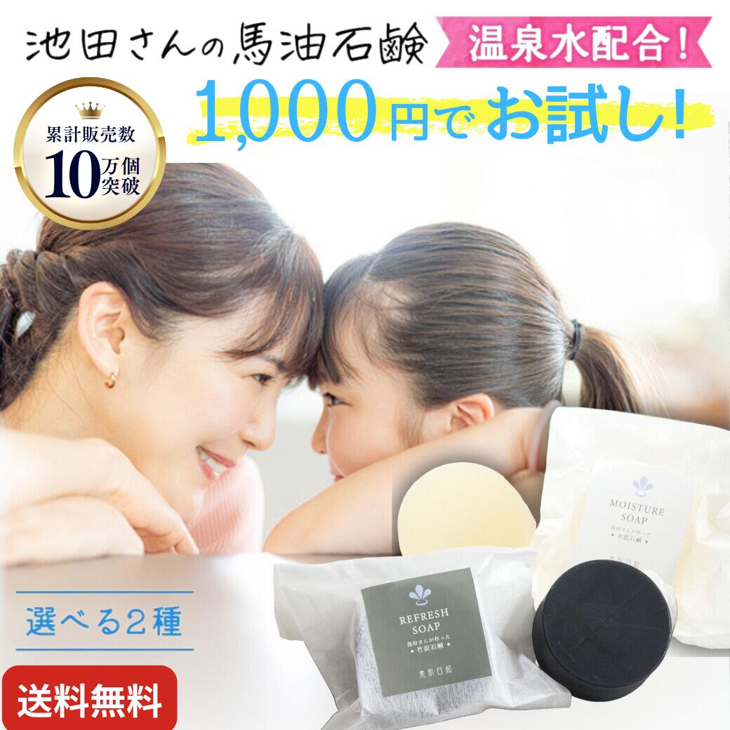 ご注文の前にご確認ください ・この商品ははじめてのお客様限定商品です。2回目以降のご注文は【定価+送料】を頂戴しています。 ・お届けする石鹸は1種類です。お好きな石鹸をお選びください。 ・日本郵便ゆうパケット便(メール便)でのお届けとなります、日時指定はできかねます。 ・1世帯あたり1セット限りとさせていただきます。 ・「代引き」「ギフト」のご対応はできません。 ・ご利用後、レビューのご記入をお願いします。 池田さんの石鹸(馬油石鹸・竹炭石鹸) お試しセットの解説 無添加の洗顔石鹸「池田さんの水肌石鹸(馬油石鹸)と竹炭石鹸(炭石鹸)」は馬油が原料の固形石鹸です。 試食して安全性を確かめる有名な池田さんの手作り石鹸は、低刺激なので乾燥肌 や敏感肌、子ども(赤ちゃん/ベビー/子供)のスキンケアにもご利用ください。 アトピー性皮膚炎でお悩みの方やニキビ、赤ちゃんの乳児湿疹などの肌ケアにも喜ばれています。 さらには、美肌の湯として有名な嬉野温泉の温泉水も配合した当店だけの限定品。 温泉につかった後のように、驚くほどなめらかに洗いあがります。 泡立ちは控えめですが、お肌に必要な皮脂まで洗い流さず洗浄力は問題ありません。 口コミで人気のこの石けんでしっとりぷる肌に♪ まずは、送料無料のトライアルセット(お試しセット)で優しさを実感して下さい。 ◆水肌せっけんの特長:低刺激な優しい洗いあがりが一番人気!しっとりぷる肌に♪ ◆竹炭石鹸の特長:竹酢液(竹さく液/ちくさく液)を配合し、さっぱりと! [関連商品のご案内] ◆池田さんの石鹸(水肌石鹸80g)×1 ◆池田さんの石鹸(竹炭石鹸80g)×1 池田さんの無添加石鹸の詳細 全成分 ▼水肌石鹸 馬油石けん素地、嬉野温泉水、グラニュー糖、グリセリン、エタノール、塩、桧油、クエン酸ナトリウム、乳酸 ▼竹炭石鹸 馬油石けん素地、嬉野温泉水、グラニュー糖、グリセリン、エタノール、塩、竹炭粉末、竹酢液、桧油、クエン酸ナトリウム、乳酸 内容量 お届けするのは、いずれか一種類です。 水肌石鹸:80g 竹炭石鹸:80g 商品種別 無添加石鹸(無添加の石鹸/石けん/セッケン/せっけん)、馬油石鹸、温泉石鹸、炭石鹸、固形の石鹸 広告文責・発売元 株式会社 素肌日和0952-29-2723 区分 日本製・化粧品池田さんの石鹸(馬油石鹸or竹炭石鹸) 選べるお試し石鹸 温泉水を配合した特別版。肌なじみがよく低刺激な石鹸でいつでも湯上りのしっとり肌に。 こちらの商品は【初回限定特別価格】のため、2回目以降のお客様は ページ内で案内している通常商品ページよりお手続きください。 2回目以降のお申込みは、【定価+送料250円】に金額を訂正して お届けいたしますのでご注意ください。 ▼ お客様から頂いたレビューです ▼ \2回目以降のお求めはこちらから!/ 詳しくはこちら> 詳しくはこちら> \池田さんの石鹸は泡立ちが控えめなのでオススメ!/ 詳しくはこちら> 1,000円 税込 送料込 カードOK レビュー686件 温泉化粧水通販の素肌日和 ![]() | ||