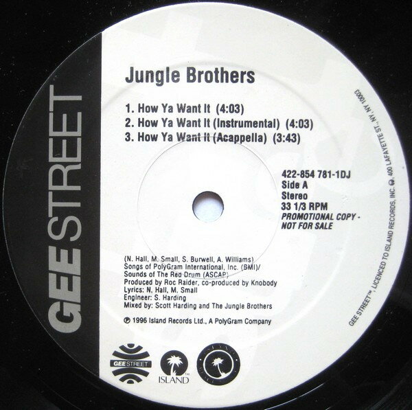 ・アーティスト Jungle Brothers ・タイトル How Ya Want It ・レーベル・型番 Gee Street 4228547811DJPROMO ・フォーマット 12インチレコード ・コンディション(盤) 良い (VG+) ・コンディション(ジャケット) 良い (VG+) ・コンディション(帯) オビなし ・特記事項 サンプル画像です。実際の商品の画像ではありません 商品写真はバーコード/カタログ番号に対応したサンプル画像ですので、お送りする商品の画像ではありません。帯やライ... 1,742円 税込 送料別 カードOK レコードシティ 楽天市場店 ![]() | ||