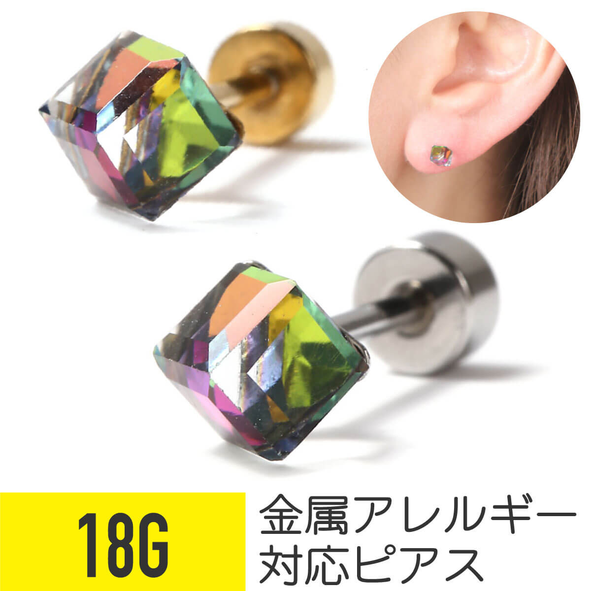 サイズ 18G (軸の太さ1.0mm) 内径:約6mm 16G (軸の太さ1.2mm) 内径:約6mm キャッチ : 約4mm モチーフ 約 縦 約7mm×横 約7mm カラー ・ パターン1(四角柄9マス) ・ パターン2(三角柄) ・ パターン3(千鳥格子風) ・ パターン4(四角柄4マス) 軸の素材 サージカルステンレス316L 【医療用ステンレス】 オススメ部位 耳たぶ (イヤーロブ) 軟骨ピアス (へリックス) 備考 ※片耳販売となりますので、両耳お使いの際は、2点ご購入... 1,650円 税込 送料込 カードOK レビュー11件 【公式】スリーナインストア ![]() | ||