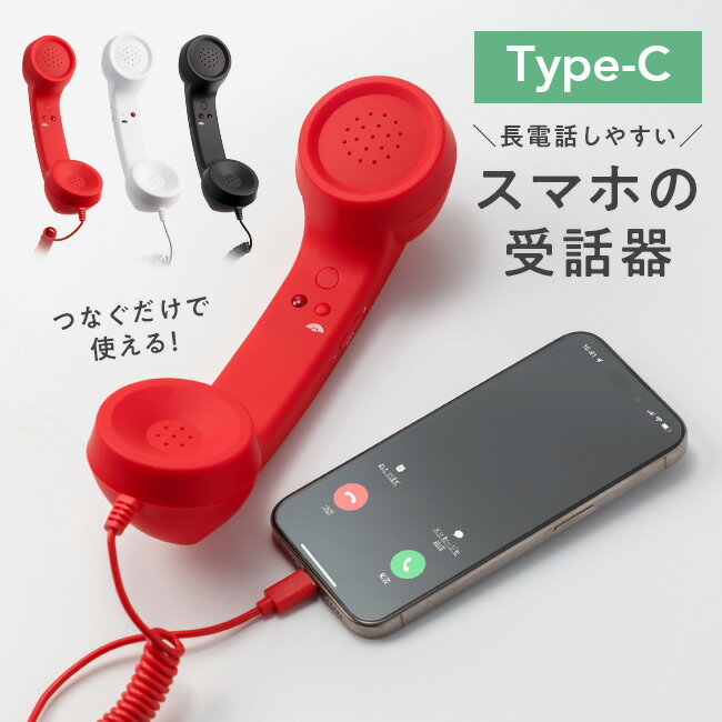 ■スマホに差すだけ。どこか懐かしい! まるで昔の電話機のような、レトロでポップなスマホ用受話器。スマートフォンやタブレットにType-Cケーブルを接続するだけですぐに使える!難しい設定や、面倒な充電などは必要ありません。 通常の音声通話だけでなく、LINE通話やZoom会議にも対応。イヤホンマイク感覚で使える便利なアイテムです。 ■選べるカラーバリエーション お好みのカラーをお選びください ■商品詳細 特徴 スマホに差すだけ。どこか懐かしい、レトロな受話器型イヤホンマイク! まるで昔の電話機のような、レトロでポップなスマホ用受話器。 スマートフォンやタブレットにType-Cケーブルを接続するだけですぐに使える!難しい設定や、面倒な充電などは必要ありません。 通常の音声通話だけでなく、LINE通話やZoom会議にも対応。イヤホンマイク感覚で使える便利なアイテムです。 重さは約108gととても軽く、長電話でも手が疲れにくい設計。受話器ならではの形状だから、肩に挟んでの会話もしやすく、両手が自由に使えます。 さらに受話器本体には「通話応答・終了ボタン」や「音量調節ボタン」を搭載。スマホを取り出さなくても、受話器から直接操作でき快適。 昔ながらの電話のようなレトロな音声を再現。どこか懐かしい響きに、思わず笑顔になること間違いなし。 メモを取りながらの電話、スマホでの電話に不慣れな方、おもしろグッズとしてのプレゼントにもぴったりです。 素材は手にしっとりなじむ、マットな質感のシリコン製。滑りにくく持ちやすいのもポイント。カールコード仕様なので、ケーブルがごちゃつかず、見た目もスマート。 Type-Cコネクタタイプで、iPhone15以降のモデルやAndroidスマホ、iPad、PCなど幅広い機種で使えます。 対応機種 Type-Cでの音声入出力が可能な端末 例:iPhone15以降、iPad、Android、PCなど カラー ・ブラック/黒/acbk ・ホワイト/白/acwh ・レッド/赤/acr サイズ 約21.5×6.2×7cm 重量 約108g 製造国 中国 備考 ※海外輸入品のため製品やパッケージに小さな傷や汚れ、へこみなどが見受けられる場合がございます。あらかじめご了承ください。 ※ご利用のモニターによって、実物と異なる色に表示される場合がございます。 ※製造時期によってデザインや仕様に若干の変更がある場合がございます。ご了承下さい。 1,980円 税込 送料込 カードOK レビュー9件 La Chou Chou ![]() | ||