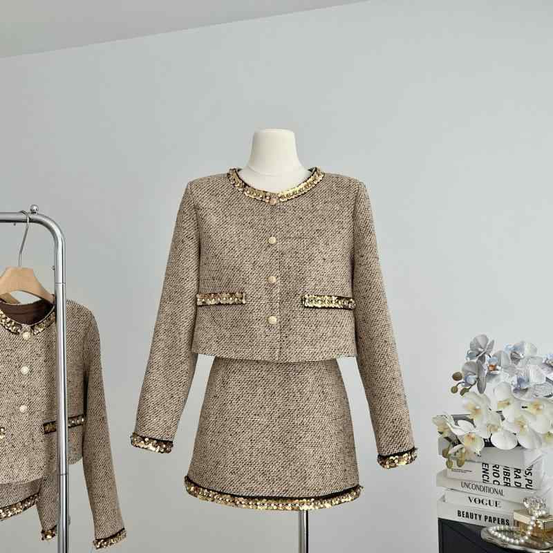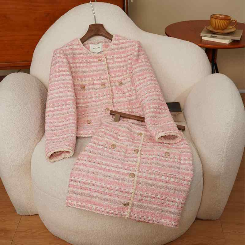 1774. 【予約販売5~12営業日での発送】 セットアップ レディース 春秋 フレンチスタイル ツイード ピンク系 トップス スカート ウール ポリエステル 長袖 短丈 ミニスカート きれいめ 上品 ・柄: ストライプ/格子・スカート丈: ミニスカート・スタイル: ギャル・袖丈: 長袖・袖のタイプ: レギュラー袖・カラー: ピンク・サイズ: S, M, L, XL・主な素材: ウール, ポリエステル・ウール混紡率: 30%未満・ポリエステル混紡率: 80-90%・セット内容: スカート 18,500円 税込 送料込 カードOK シャドーテール ![]() | ||