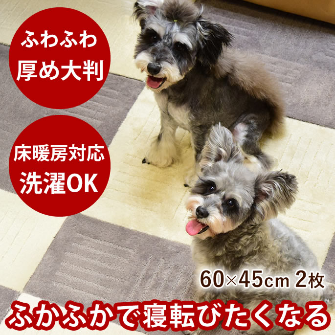 ※1 常温品と冷凍品混在時は11000円以上で送料無料 ※2 沖縄・北海道は11000円以上で通常送料無料、常温混在時は22000円以上で送料無料となります。 ※3 ただし在庫有りの商品に限る。土曜日は12時までとなります。 ※4 定休日:日曜日・第1第3土曜日・祝日となります。 ■お支払方法について ■購入後も安心の返品・交換について ■送料やお届け目安について ■会社概要 ふわふわタイルカーペット ピタプラス 60cm×45cm 床を掃除してシールを剥がしておくだけ簡単! 約10mmでクッション性抜群 寝転びたくなるマットです。 関節保護に最適なタイルマットタイプです。パイル生地で汚れたところだけ洗濯することが可能です。 床暖房にもしっかりと対応。掃除機をかけてもめくれたり、くっついたりしません。 寒い時期にピッタリの商品ですが通年通してご利用頂けます。 ラグとしてキッチン回りや愛犬の食事場所、トイレなどにも使用可能です。 ●内容量/2枚セット ●1枚のサイズ/縦45×横45cm、厚み:約10mm ●材質/ポリエステル100% ●製造国/日本 ●床暖房対応/ ■配送方法 ヤマト運輸 ■送料について のみ → 5500円以上送料無料 のみ → 5500円以上送料無料 ※沖縄・北海道・一部離島は11000円以上 +同時注文 → 11000円以上送料無料 ※沖縄・北海道・一部離島は22000円以上 冷凍商品と常温商品の同梱は出来ません。 送料表の常温品+冷凍品の料金をご参照ください。 ※金額変更の場合がございます。 冷凍同時注文の際や、沖縄北海道一部離島は追加送料など、ご注文後に金額修正をする場合がございます。 詳しくは【送料について】をご一読くださいませ。 スタッフが使ってみた感想(床に貼って2週間) 老犬のポメラニアン9才と ポメ×ペキ2才 良い所 ●ふかふかで歩いていて気持ちがいい。 ●愛犬も安心して走っている。関節には本当に良いと思う。 ●グレーがほこりなど目立たなくいつまでも清潔感アリ。 ●タイルマットというより厚みのある絨毯(じゅうたん)という感じ ●人間でも寝転んで寝れると思った。(スタッフ 田代) ●厚みがありしっかりしてるのでフローリングに敷いていくのも簡単だった。 ●掃除機でそうじもしやすく毛やホコリも取れやすい。 気になった点所 ●価格 ●厚みがあるのでドアの開閉する所には敷けなかった。 ●洗濯機で洗うのは洗濯機の説明書を確認!と書いてあるぐらい大きい。 その他 1枚1枚プラスしてつなげて使うピタプラス キッチンマットなら汚れた部分だけサッと取り出してお洗濯できます。 つなぎ目がわかりにくいように特殊カットした ピタプラスだから、お洗濯を何度繰り返してもふかふかのパイルはほつれてきません。 裏面には吸着素材になっているから床にピタッとくっついて動きません。 だから上から掃除機をかけてもずれずにストレスフリー。 ロボット掃除機が上にのってもずれないので安心して掃除を任すことができます。 吸着面に汚れがついてしまうと吸着力が落ちてしまうので洗濯することで再び使い始めのような吸着力が復活します。 従来のキッチンマットでは長くて重いので設置するのが大変ですが、軽くて両手でも持ちやすいピタプラスなら裏面に吸着素材がついていても簡単に思った場所にピタッと設置することができます。1320円(税込) 2420円(税込) 13860円(税込) 40392円(税込) 2,750円 税込 送料別 カードOK レビュー2件 帝塚山ハウンドカム 楽天市場店 ![]() | ||