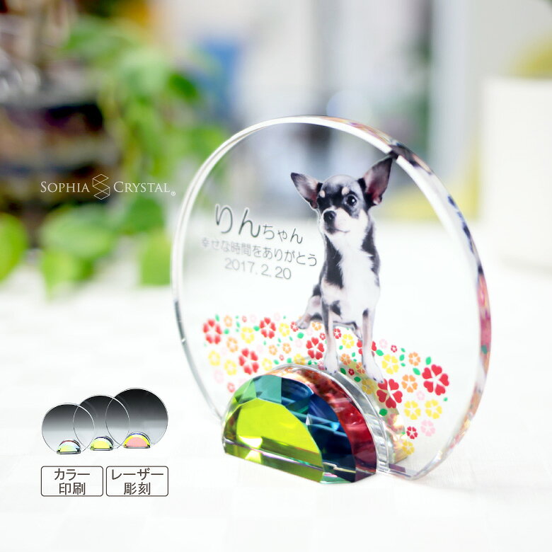 ウェルカム記念・お誕生日・その他記念に心に残るペットメモリアルをお作りしませんか? ペットという枠を越えて“家族”として暮らしているという方々も多くいます。 これから飼いはじめるご家族、すでに飼っているご家族の方々。思い出作りのお手伝いをさせてください。 またそのペットが亡くなった際には、人間と同じように供養したいと思うご家族が増えています。愛情が深ければ自然と思うものです。 ソフィアクリスタルのペットメモリアルは生前の元気な頃... 15,730円 税込 送料込 カードOK レビュー4件 名入れギフト専門店SophiaCrystal ![]() | ||