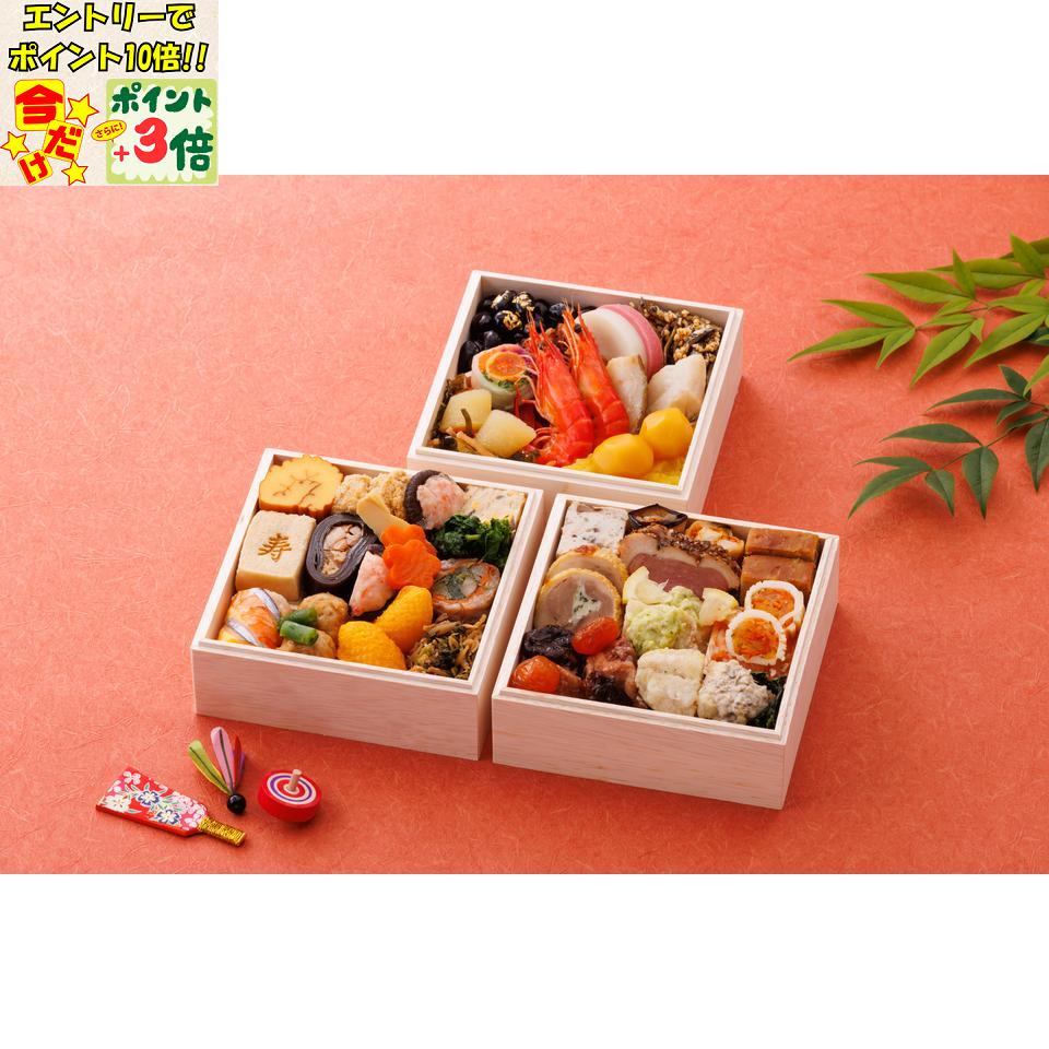 【おせち】赤坂あじさい 雅 三段重[冷凍] 2人前[新しい年を、笑顔で囲むおせち]【ご予約は12/15(月) 15時まで】「赤坂あじさい」監修の和洋折衷のおせちとして三の重には洋メニューを採用。37品を丁寧に盛込んだ2人前のおせちです。「赤坂あじさい」は東京赤坂に店を構え、炭火焼や山形料理が好評。山形県出身の佐藤氏が山形県を中心に取り寄せた厳選素材を使用した四季折々の料理をお楽しみいただけます。●特定原材料:卵・乳成分・小麦・えび・かに・くるみ●お重材質... 10,800円 税込 送料込 カードOK マックスバリュ東海楽天市場店 ![]() | ||