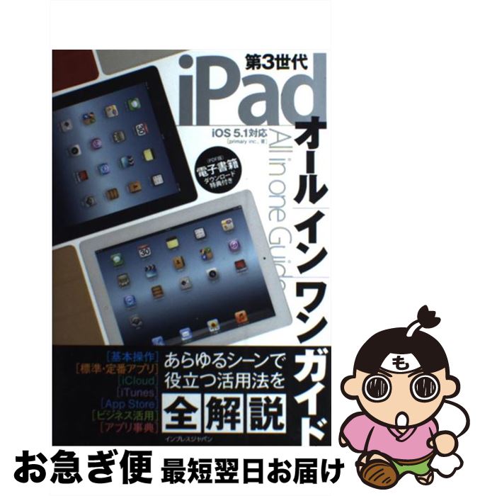 著者:primary inc.,出版社:インプレスサイズ:単行本(ソフトカバー)ISBN-10:4844331973ISBN-13:9784844331971■こちらの商品もオススメです ● iPad知りたいことがズバッとわかる本 新しいiPad対応 / 田中 裕子 / 翔泳社 [単行本(ソフトカバー)] ■通常24時間以内に出荷可能です。■ネコポスで送料は1~3点で298円、4点で328円。5点以上で600円からとなります。※2,500円以上の購入で送料無料。※多数ご購入頂いた場合は、宅配便での発送になる場合があります。■ただいま、オリジナルカレンダーをプレゼントしております。■送料無料の「もったいない本舗本店」もご利用ください。メール便送料無料です。■まとめ買いの方は「もったいない本舗 おまとめ店」がお買い得です。■中古品ではございますが、良好なコンディションです。決済はクレジットカード等、各種決済方法がご利用可能です。■万が一品質に不備が有った場合は、返金対応。■クリーニング済み。■商品画像に「帯」が付いているものがありますが、中古品のため、実際の商品には付いていない場合がございます。■商品状態の表記につきまして・非常に良い: 使用されてはいますが、 非常にきれいな状態です。 書き込みや線引きはありません。・良い: 比較的綺麗な状態の商品です。 ページやカバーに欠品はありません。 文章を読むのに支障はありません。・可: 文章が問題なく読める状態の商品です。 マーカーやペンで書込があることがあります。 商品の痛みがある場合があります。 998円 税込 送料別 カードOK もったいない本舗 お急ぎ便店 ![]() | ||