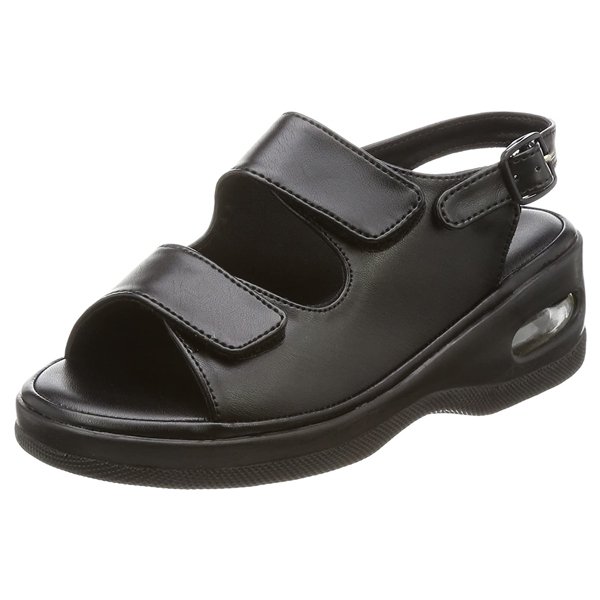 「エアー2バンドサンダル」は、足のフィット感が抜群の、ベロクロ調整2本バンドサンダルです。 ●足幅の調節が可能な、フィット感抜群のベロクロを採用。 ●疲れにくいエアークッションインソール付き。 ●バックストラップは、窮屈な締めつけ感を緩和するため、一部ゴムを採用しています。 ●かかと底面にすべり止め付き。 【カラー】ブラック 【適応サイズ】M:22.5〜23.0cm 【足囲】2E〜3E 【ヒール高さ】約4.5cm 【重量(片足)】約240g(Mサイズ) 【材質】アッパー:ポリウレタン ソール:ウレタン・ゴム 【その他】中国製 【メーカー品番】FR-441 3,160円 税込 送料別 カードOK アイケアショップ 介護用品のお店 ![]() | ||