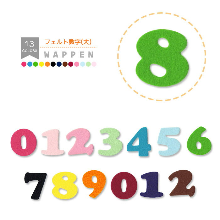 MEMO フェルト素材の型抜きタイプの数字ワッペン。 小さなサイズなので巾着やポーチなどの小さめの持ち物のお名前付けなどにもおすすめ! ビビッドなカラーからパステルカラー、ベーシックカラーの全13色から選べて、同じ色で並べても色違いで並べてもGOOD! お子様はもちろん大人向けにも用途に合わせて選んでいただけます。 もちろん裏面はアイロン接着対応なので、アイロンで簡単に取り付けられます。 ※こちらは1文字1枚での単価です。 ※このページでは数字のみの販売となります。画像内にありますアルファベットのワッペンは別のページにて販売しております。 商品詳細 サイズ 高さ約3.5cm前後 ※サイズは文字によって変わります ※現物での計測となりますので多少の誤差はご了承ください 素材 (フェルト)ポリエステル100% 裏面 アイロン接着[EVA樹脂] 取扱い注意 ※あて布を当ててアイロン接着することをお勧めします。 ※高温に弱い生地や薄手の生地・防水加工などの特殊な加工を施してある生地には使用しないでください。 ※洗濯回数が多いものや、毛羽立った生地や、伸縮性のあるタイツやレギンスなど、素材によっては剥がれやすい場合もあります。 ※ドライクリーニングや塩素系漂白剤のご使用は避けてください。 ※お洗濯の際は、手洗い、またはネットのご使用を推奨しております。 ※尚、すべてのワッペンは、縫いつけてご使用いただく事をお勧めいたします。 納期 通常は、ご注文後2〜3営業日以内の発送になります。 ・一度に複数個ご注文頂く場合、表記よりも発送までにお日にちを頂く場合がございます。 ・繁忙期(1月〜4月)は、例年で商品発送までに1週間ほどお時間を頂いております。 上記の場合で納期にご希望がある方は当店までお問い合わせください。 ※画像の色はなるべく実物に近づけるよう努力をしておりますが、モニタの環境などにより、若干色味が異なる場合がございます。予めご了承ください。▼ひらがなワッペンと合わせて使える飾り枠ワッペンが登場▼ 60円 税込 送料別 カードOK レビュー15件 おともだちの広場 ![]() | ||